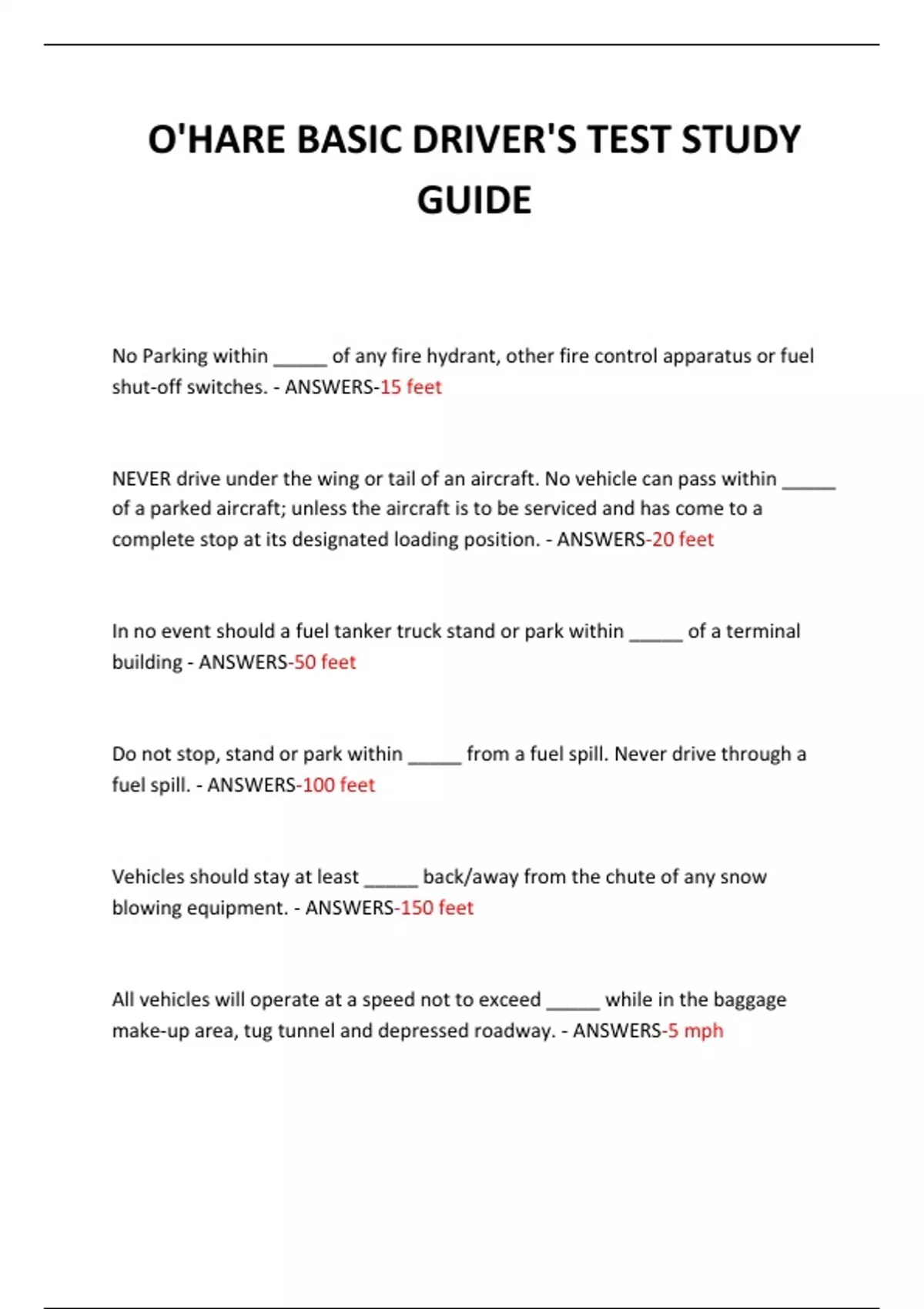 O'HARE BASIC DRIVER'S TEST STUDY GUIDE QUESTIONS AND ANSWERS 2024