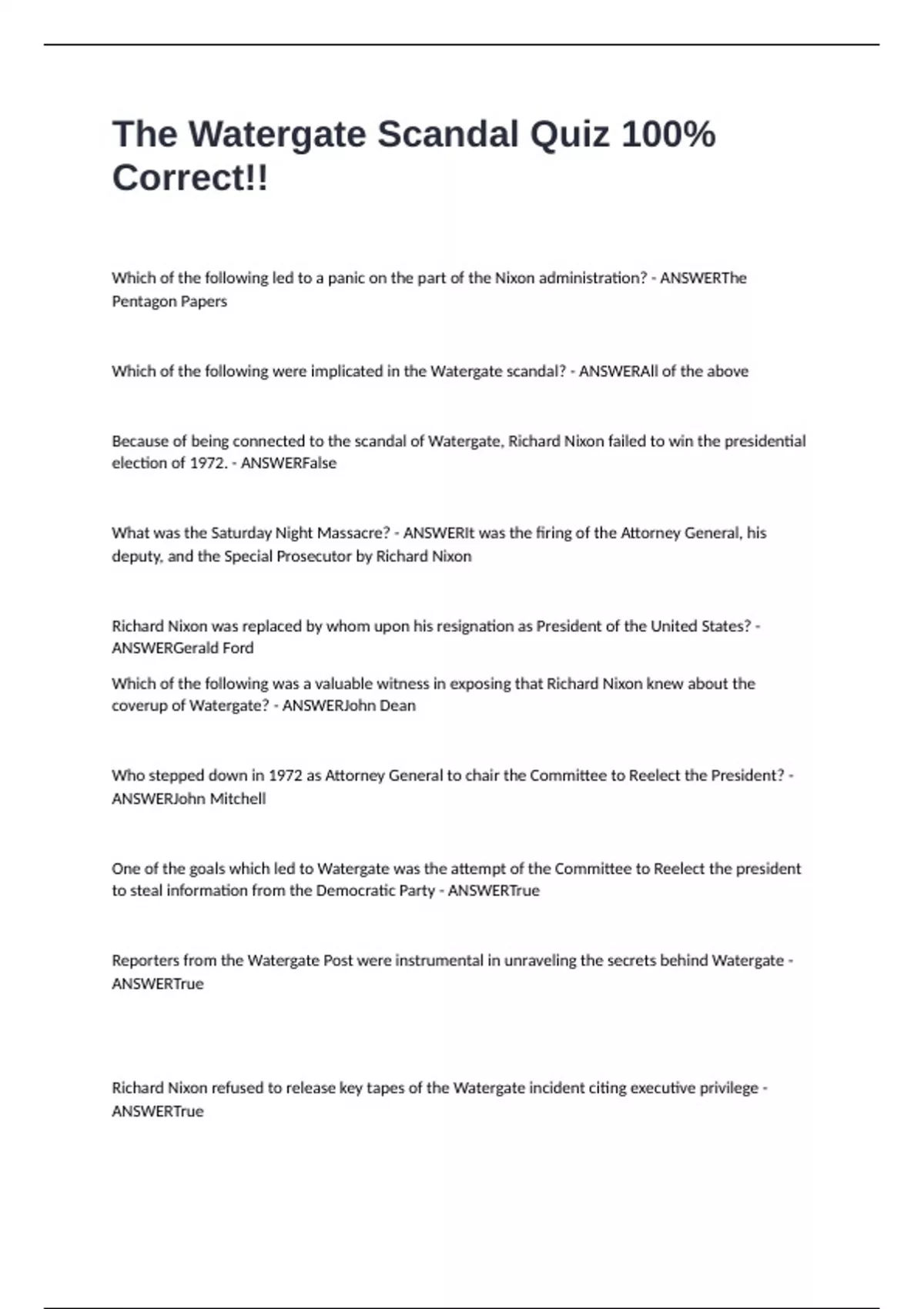 Which of the following were implicated in the Watergate scandal? - ANSWERAll of the above