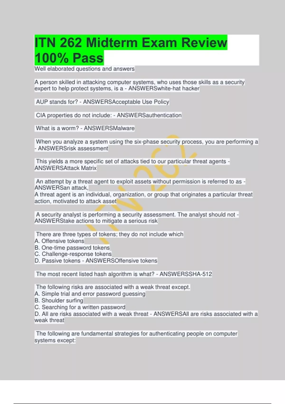 D. All are risks associated with a weak threat - ANSWERSAll are risks associated with a