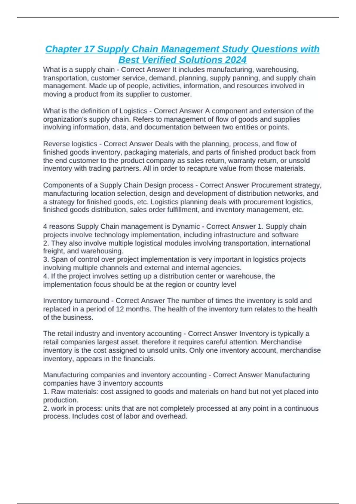 Chapter 17 Supply Chain Management Study Questions with Best Verified Solutions 2024