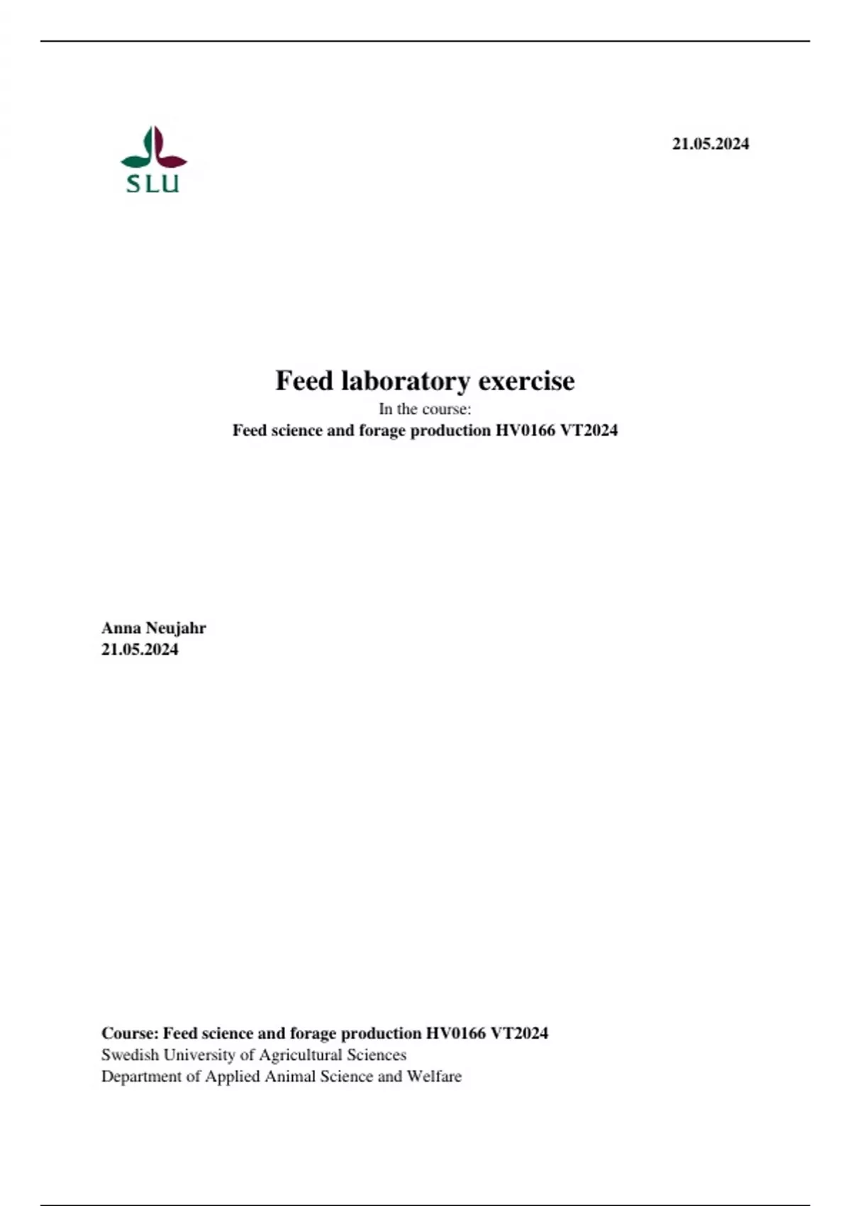 Course: Feed science and forage production HV0166 VT2024