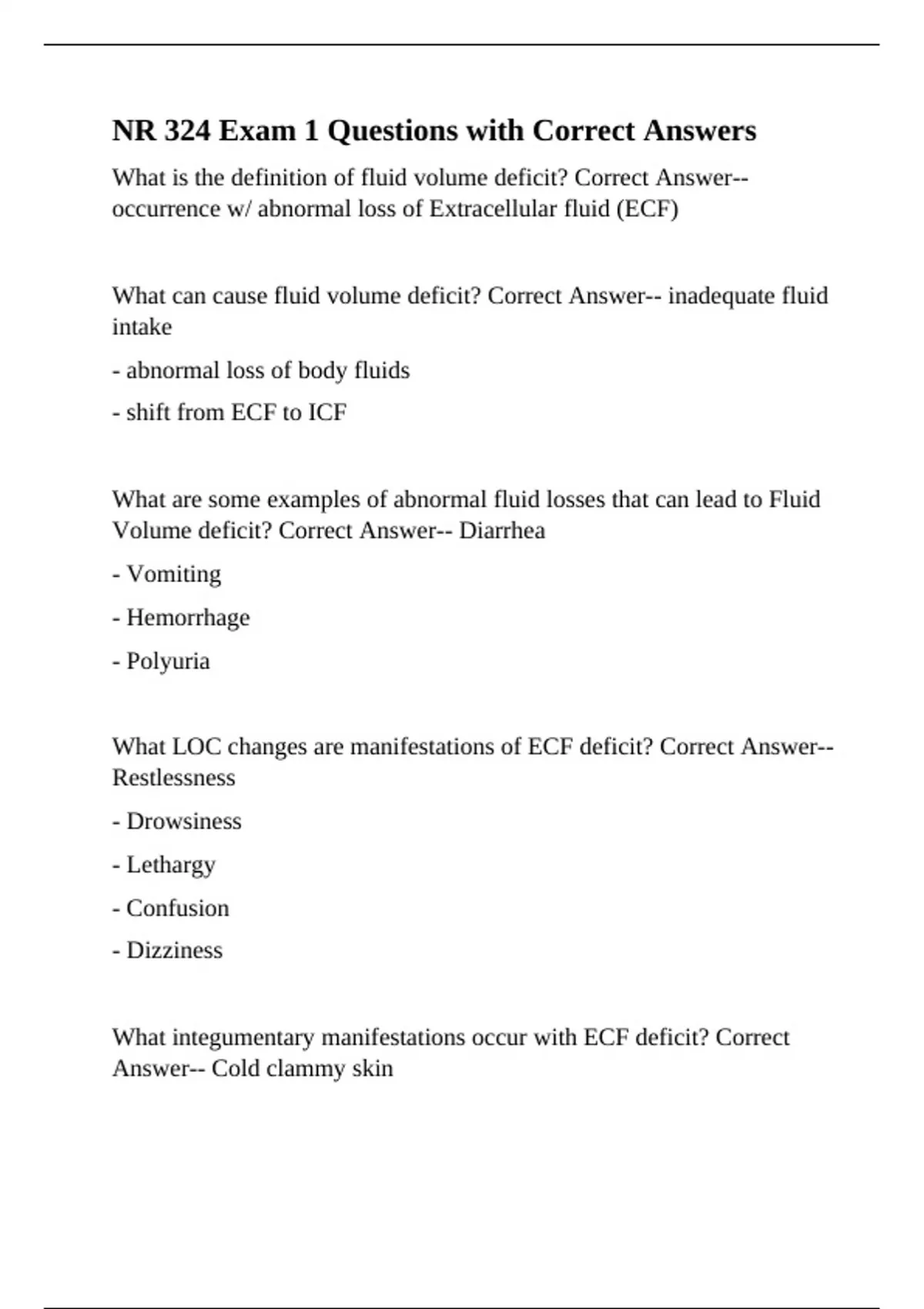 deficit? Correct Answer-- PRN (ECF deficit Cardio)