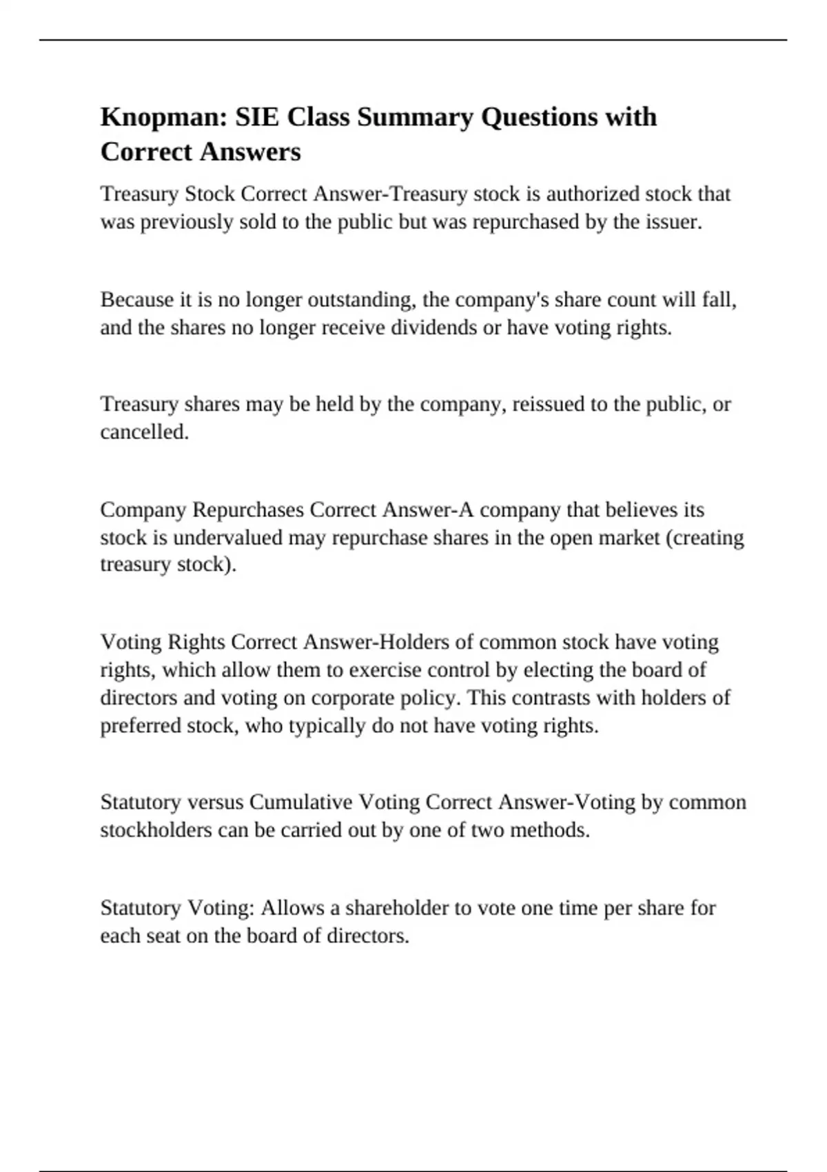 Treasury Stock Correct Answer-Treasury stock is authorized stock that