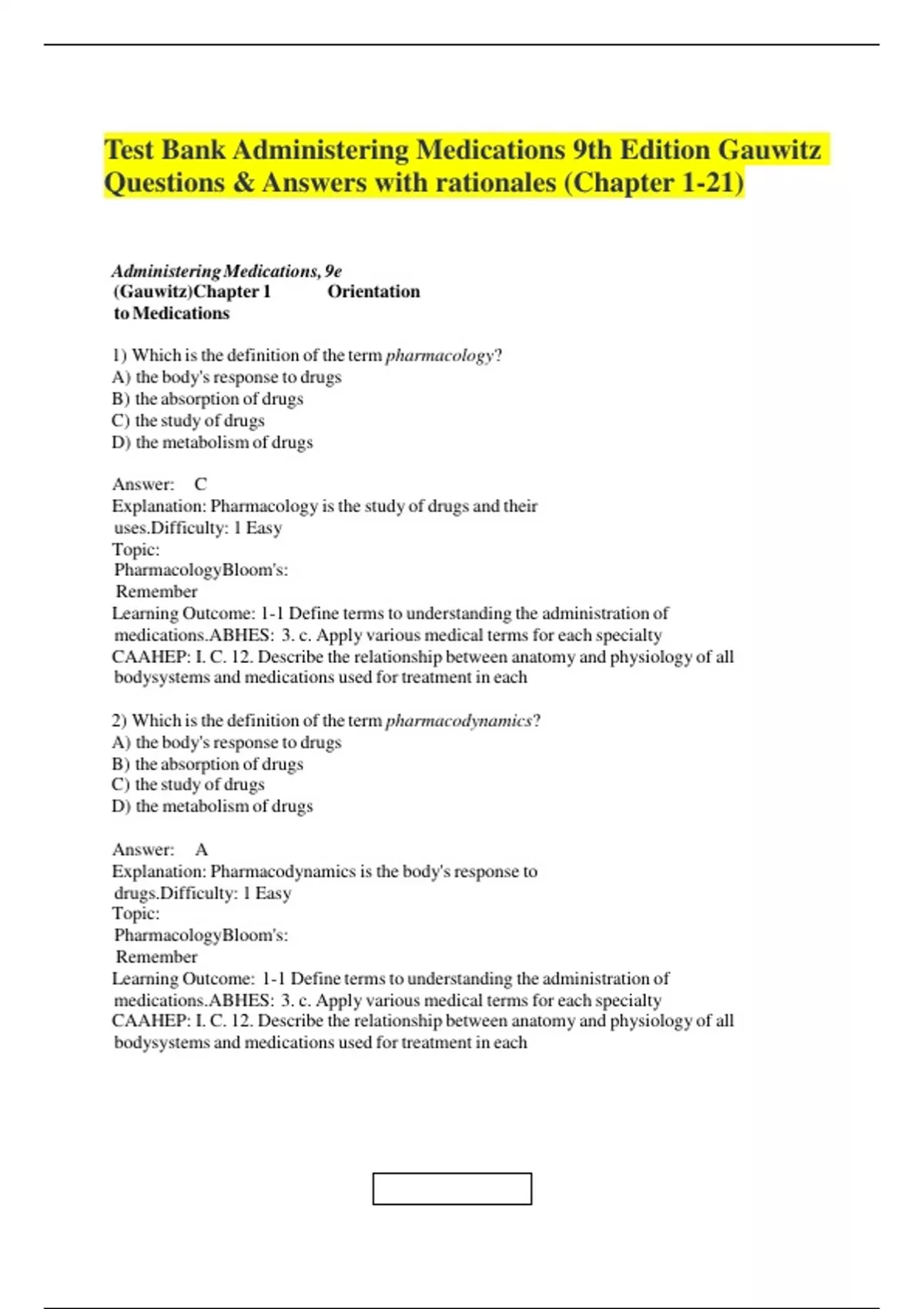 medications.ABHES: 3. c. Apply various medical terms for each specialty