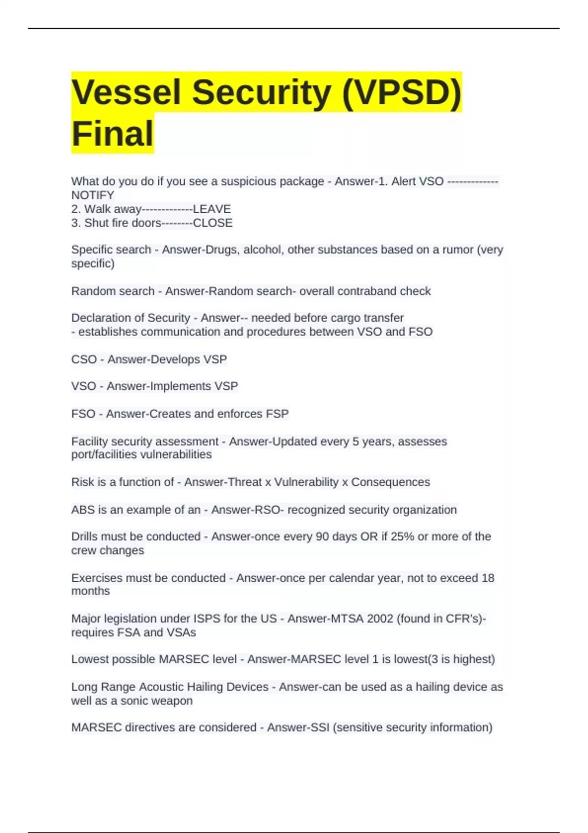 What do you do if you see a suspicious package - Answer-1. Alert VSO -------------