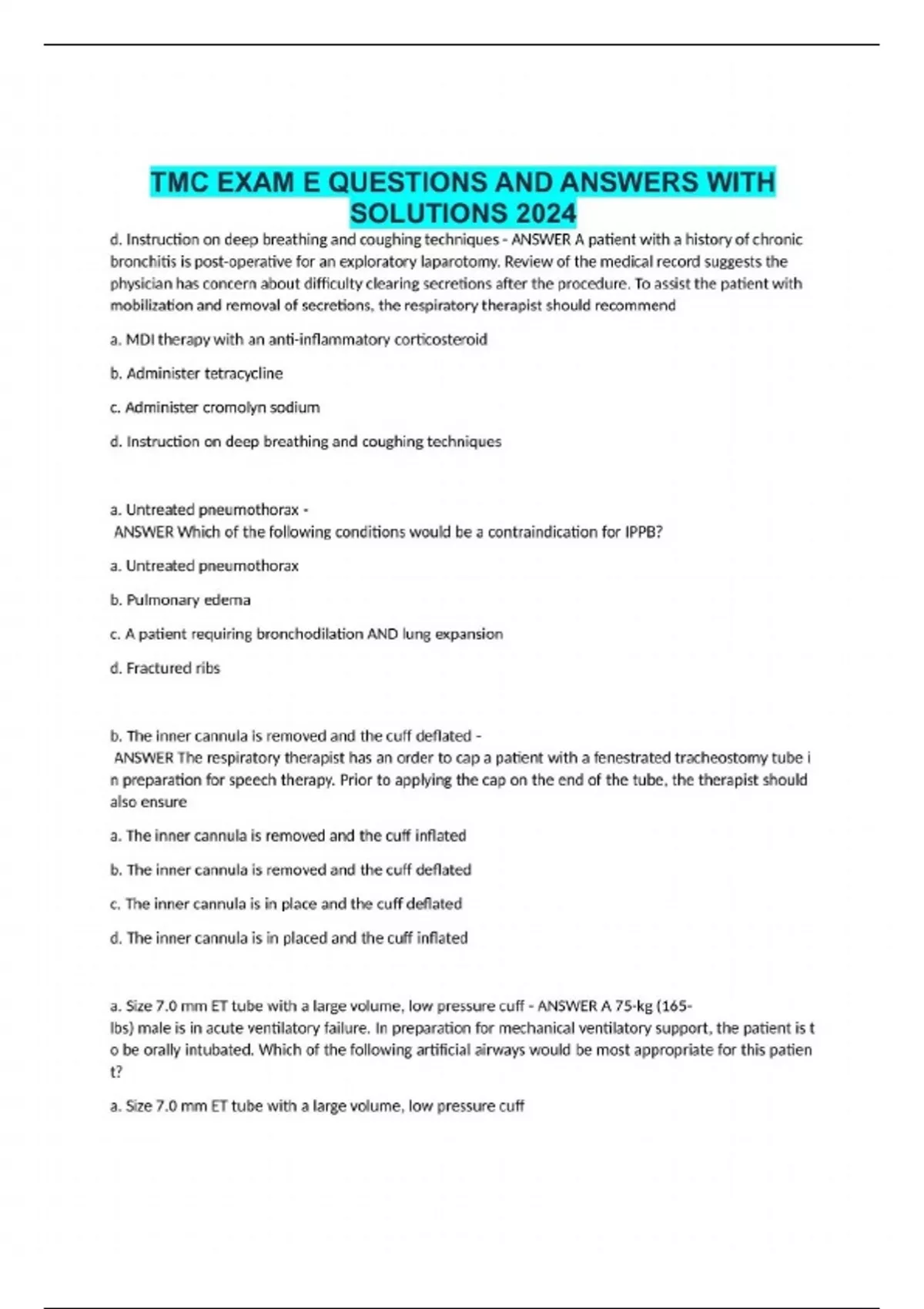 TMC EXAM E QUESTIONS AND ANSWERS WITH SOLUTIONS 2024