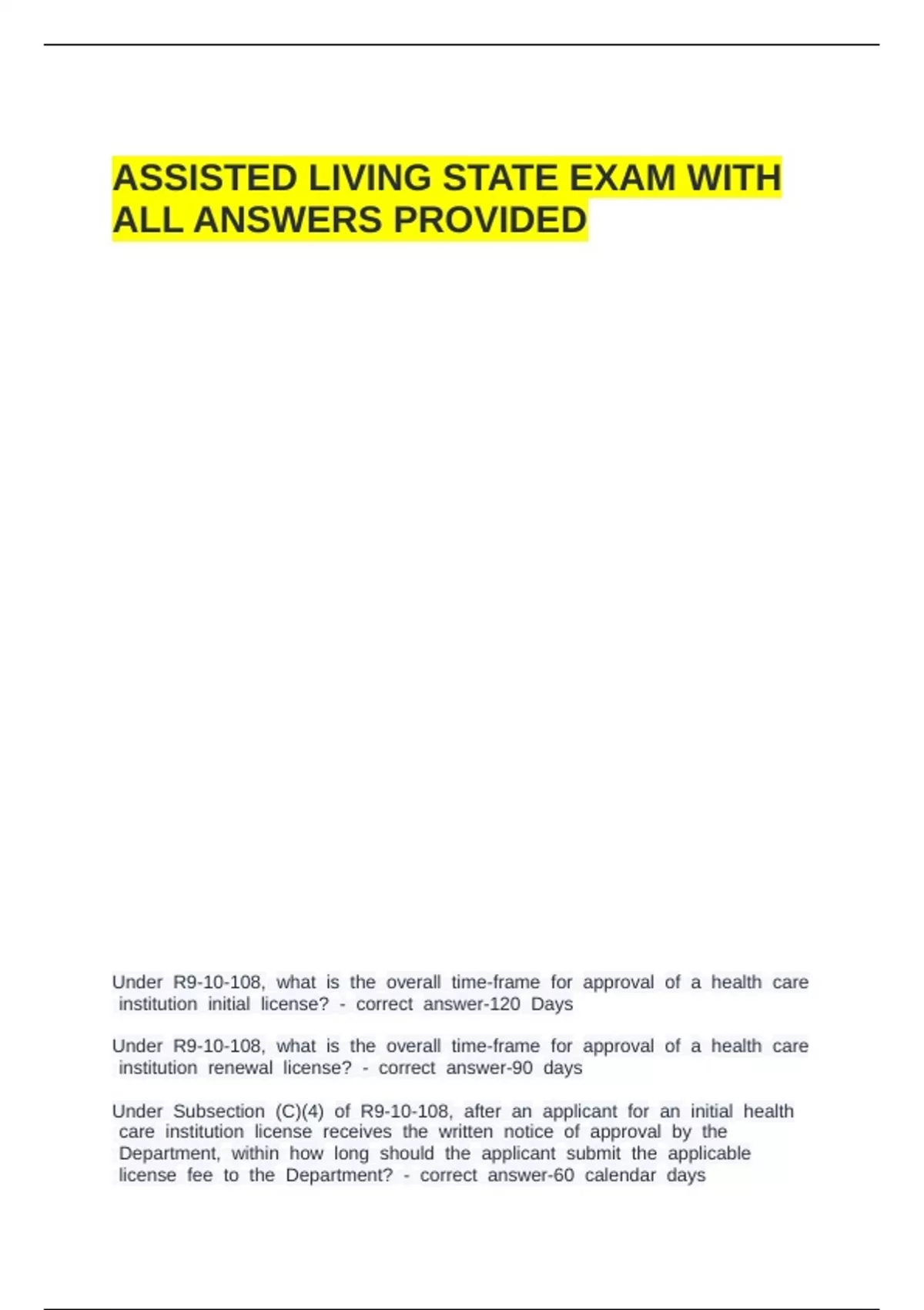 ASSISTED LIVING STATE EXAM WITH ALL ANSWERS PROVIDED.