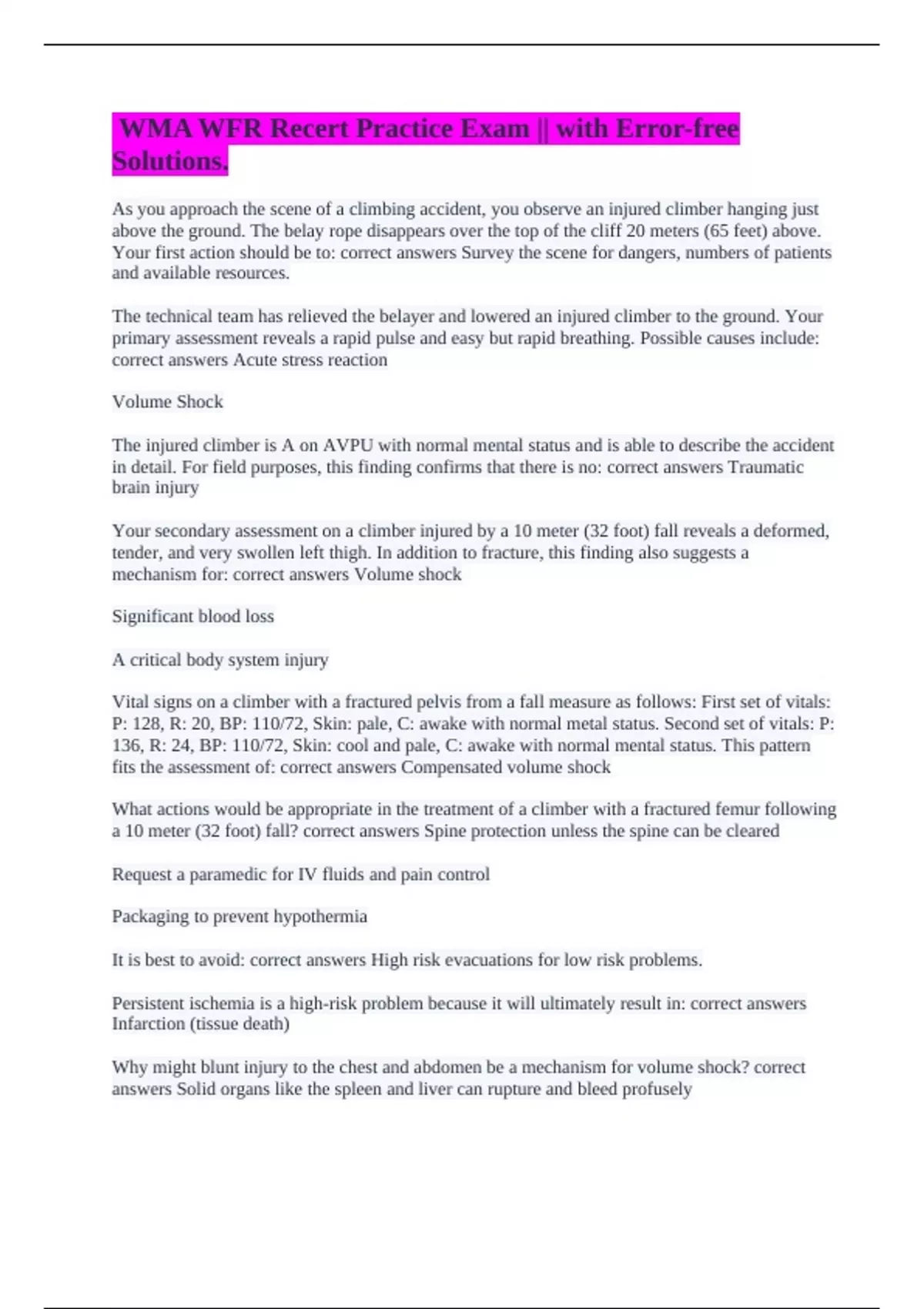 a 10 meter (32 foot) fall? correct answers Spine protection unless the spine can be cleared
