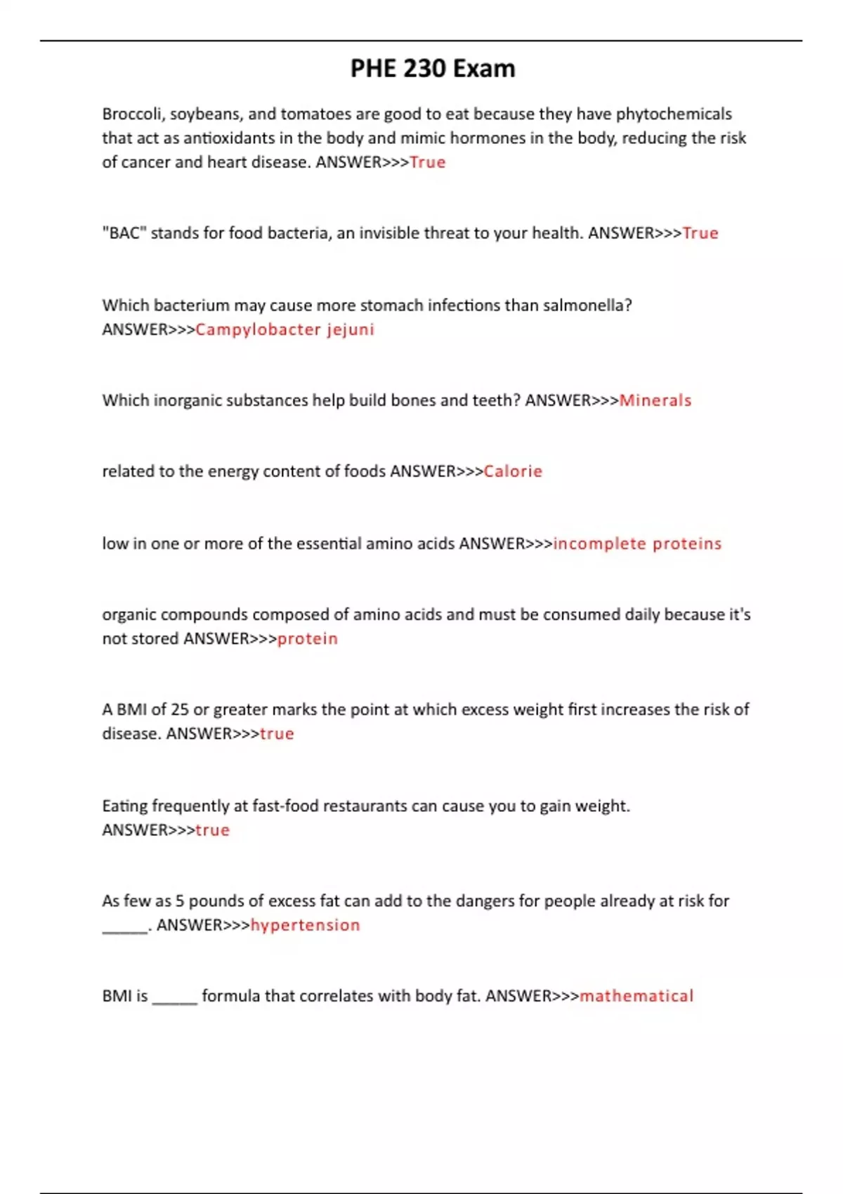 PHE 230 Exam