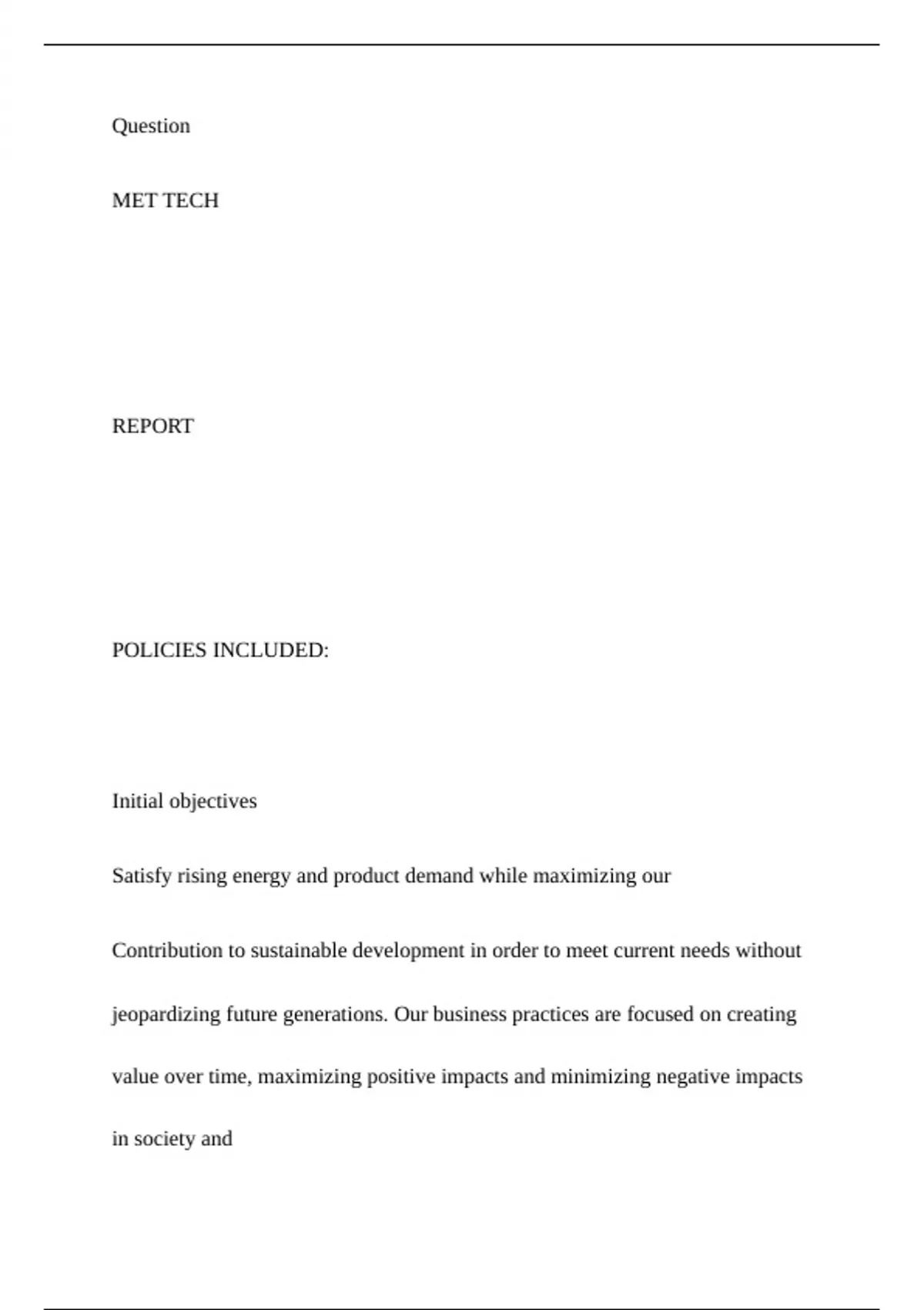 Initial objectives