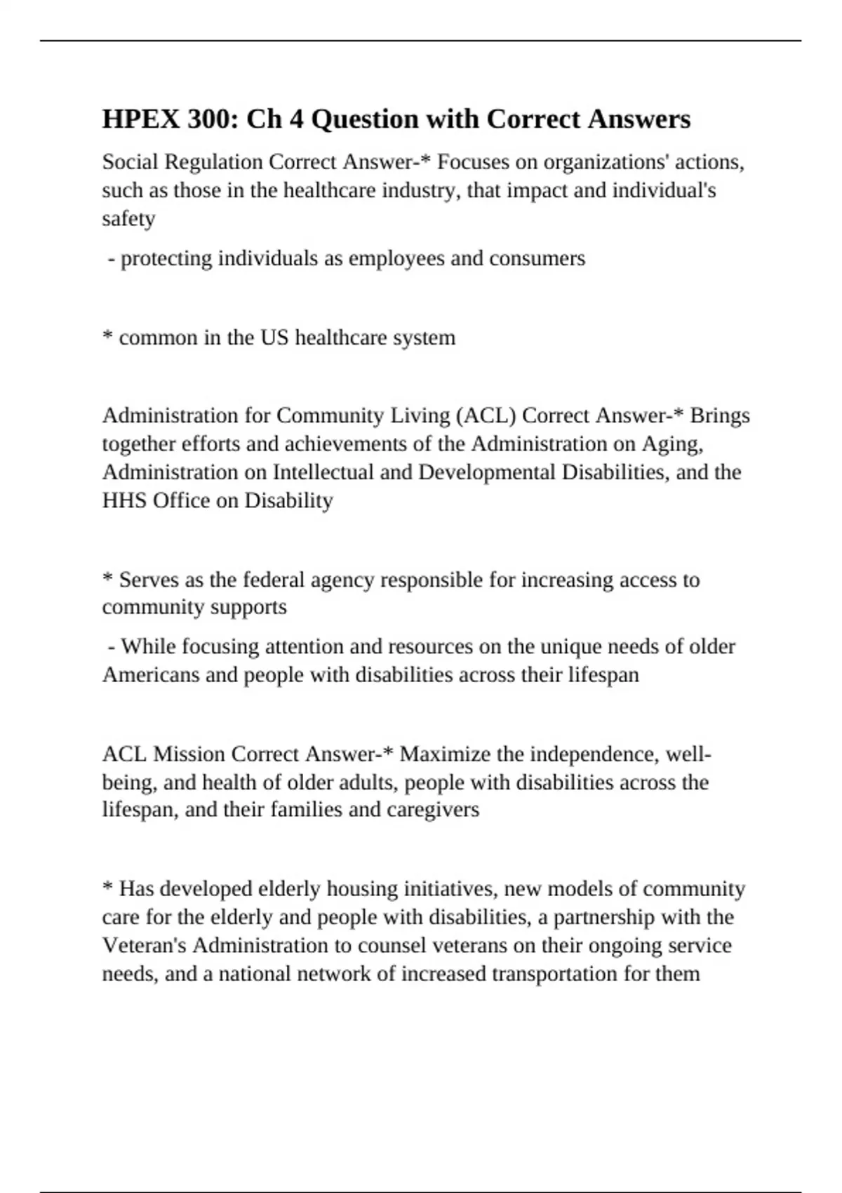 Administration for Community Living (ACL) Correct Answer-* Brings