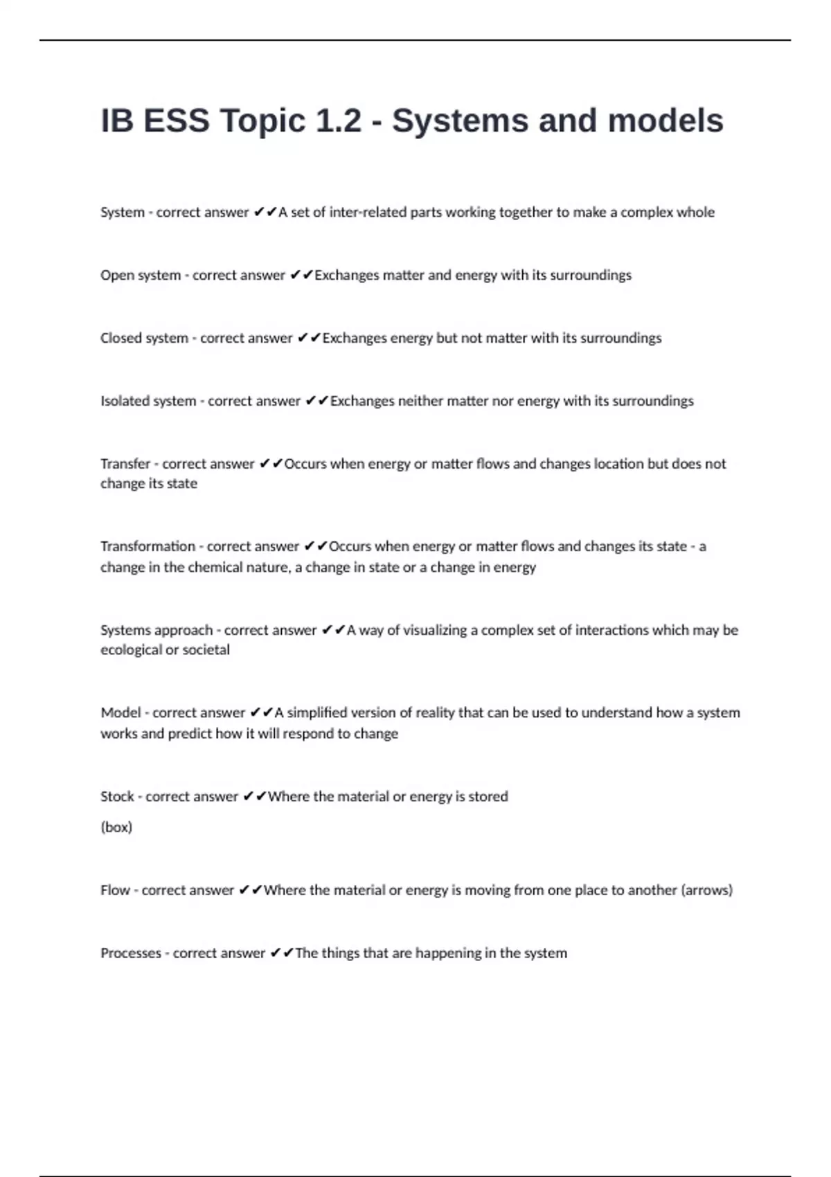 System - correct answer ✔✔A set of inter-related parts working together to make a complex whole