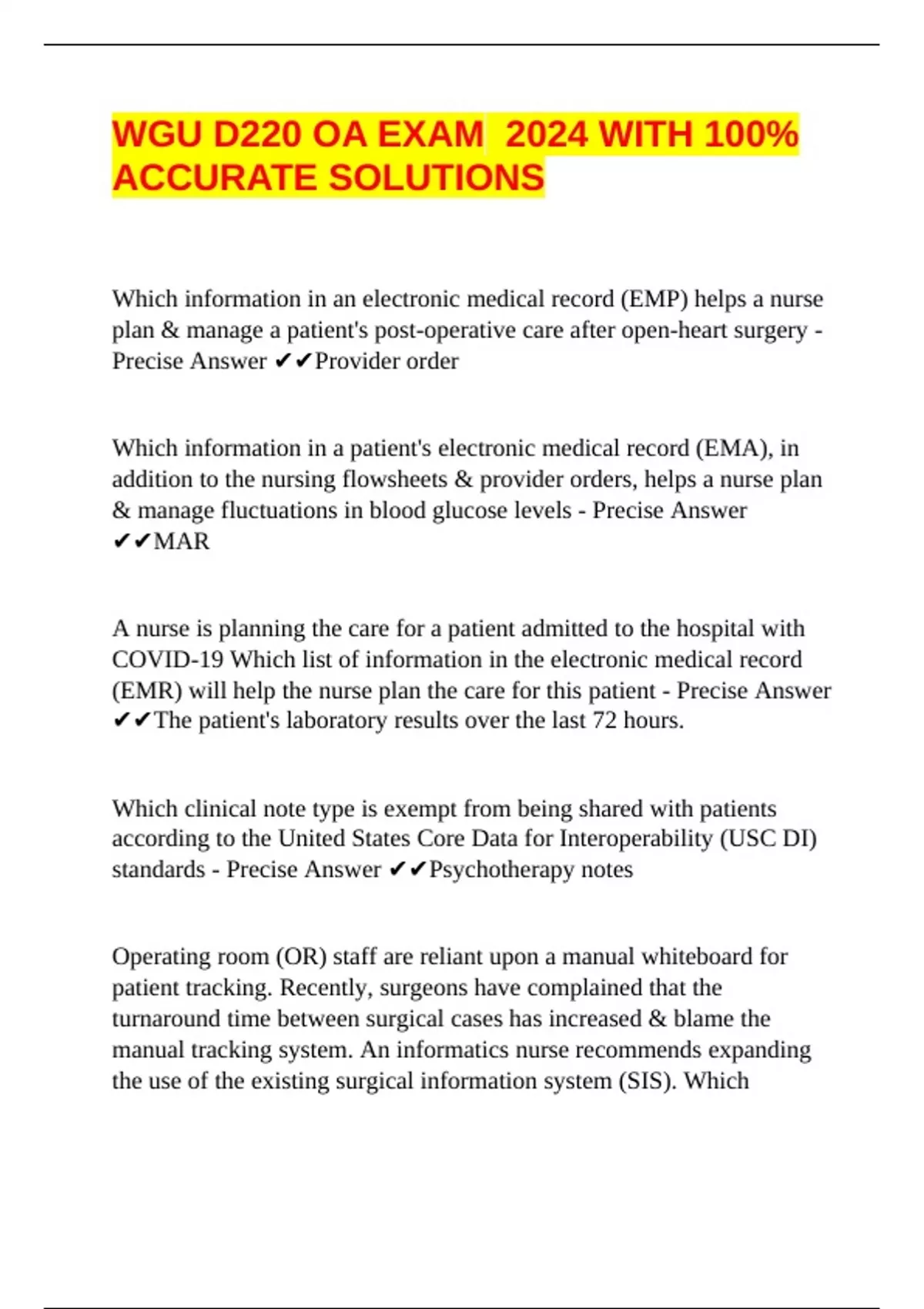 Precise Answer ✔✔CMS (Centers for Medicare and Medicaid Services