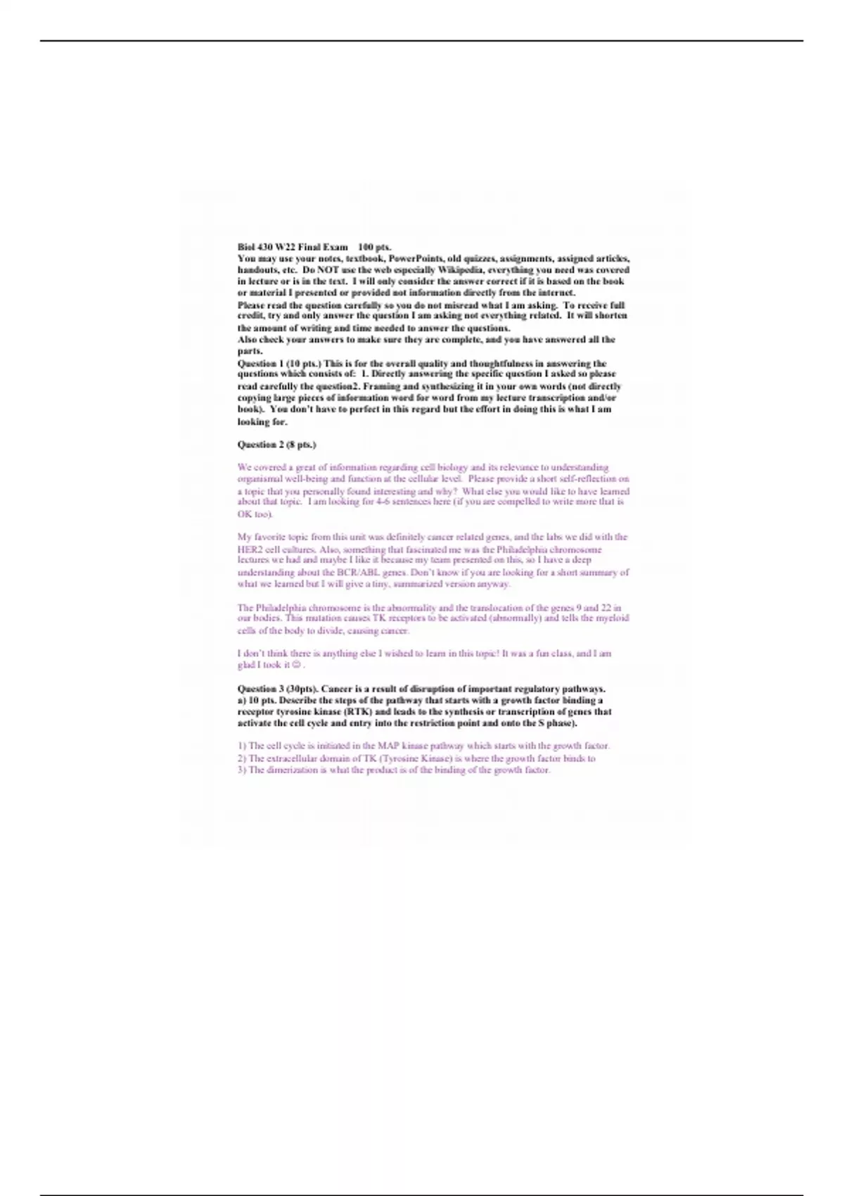 Question 3 (30pts). Cancer is a result of disruption of important regulatory pathways.