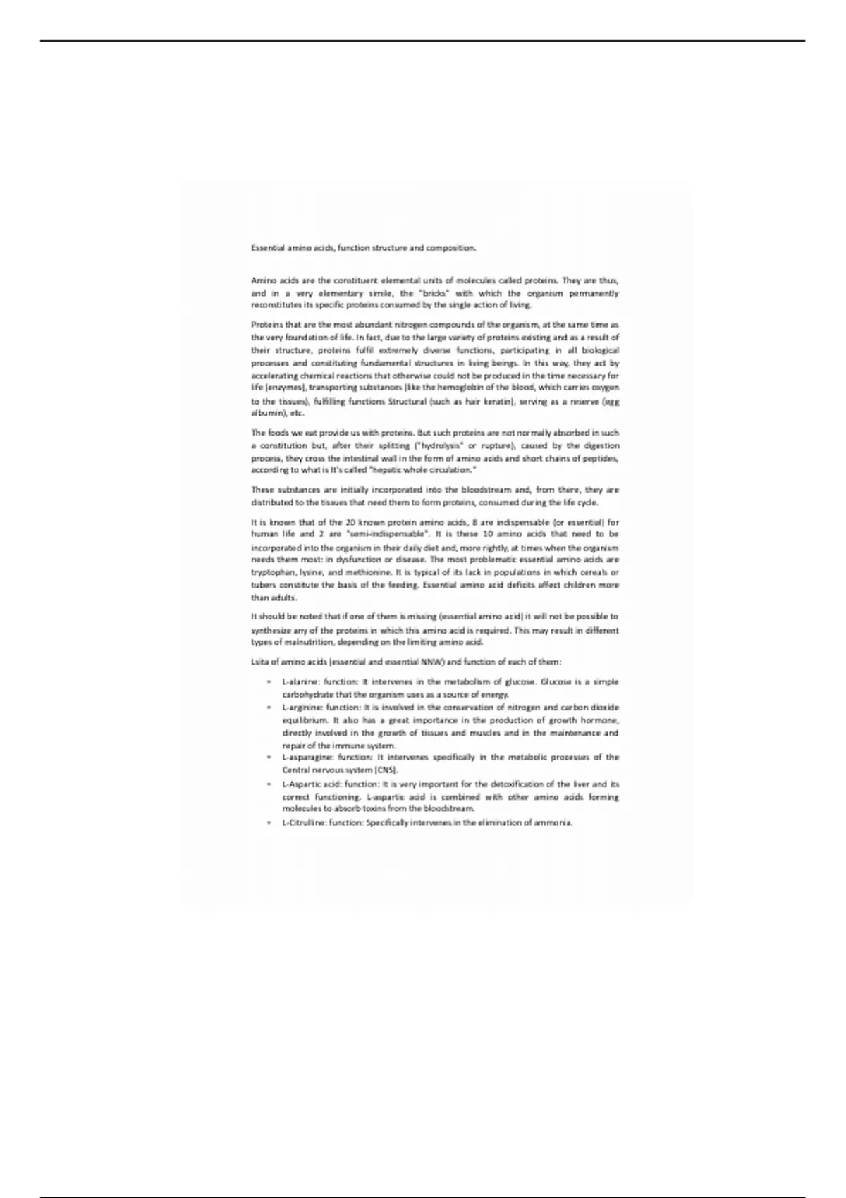 Lsita of amino acids (essential and essential NNW) and function of each of them: