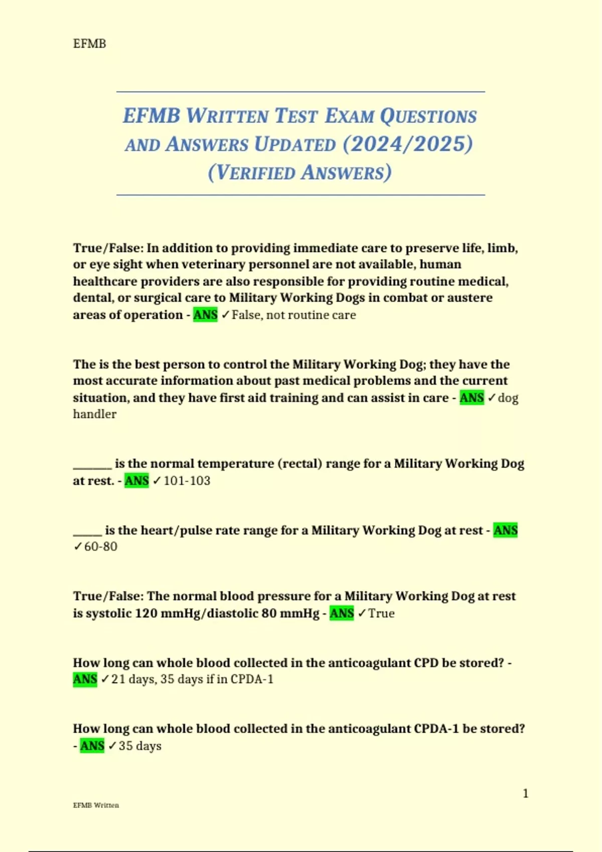 EFMB WRITTEN TEST EXAM QUESTIONS AND ANSWERS UPDATED (2024/2025) (VERIFIED ANSWERS)EFMB WRITTEN TEST EXAM QUESTIONS AND ANSWERS UPDATED (2024/2025) (VERIFIED ANSWERS)EFMB WRITTEN TEST EXAM QUESTIONS AND ANSWERS UPDATED (2024/2025) (VERIFIED ANSWERS)EFMB WRITTEN TEST EXAM QUESTIONS AND ANSWERS UPDATED (2024/2025) (VERIFIED ANSWERS)EFMB WRITTEN TEST EXAM QUESTIONS AND ANSWERS UPDATED (2024/2025) (VERIFIED ANSWERS)EFMB WRITTEN TEST EXAM QUESTIONS AND ANSWERS UPDATED (2024/2025) (VERIFIED ANSWERS)EFMB WRITTEN TEST EXAM QUESTIONS AND ANSWERS UPDATED (2024/2025) (VERIFIED ANSWERS)EFMB WRITTEN TEST EXAM QUESTIONS AND ANSWERS UPDATED (2024/2025) (VERIFIED ANSWERS)EFMB WRITTEN TEST EXAM QUESTIONS AND ANSWERS UPDATED (2024/2025) (VERIFIED ANSWERS)EFMB WRITTEN TEST EXAM QUESTIONS AND ANSWERS UPDATED (2024/2025) (VERIFIED ANSWERS)EFMB WRITTEN TEST EXAM QUESTIONS AND ANSWERS UPDATED (2024/2025) (VERIFIED ANSWERS)EFMB WRITTEN TEST EXAM QUESTIONS AND ANSWERS UPDATED (2024/2025) (VERIFIED ANSWERS)EFMB WRITTEN TEST EXAM QUESTIONS AND ANSWERS UPDATED (2024/2025) (VERIFIED ANSWERS)EFMB WRITTEN TEST EXAM QUESTIONS AND ANSWERS UPDATED (2024/2025) (VERIFIED ANSWERS)EFMB WRITTEN TEST EXAM QUESTIONS AND ANSWERS UPDATED (2024/2025) (VERIFIED ANSWERS)EFMB WRITTEN TEST EXAM QUESTIONS AND ANSWERS UPDATED (2024/2025) (VERIFIED ANSWERS)EFMB WRITTEN TEST EXAM QUESTIONS AND ANSWERS UPDATED (2024/2025) (VERIFIED ANSWERS)EFMB WRITTEN TEST EXAM QUESTIONS AND ANSWERS UPDATED (2024/2025) (VERIFIED ANSWERS)EFMB WRITTEN TEST EXAM QUESTIONS AND ANSWERS UPDATED (2024/2025) (VERIFIED ANSWERS)EFMB WRITTEN TEST EXAM QUESTIONS AND ANSWERS UPDATED (2024/2025) (VERIFIED ANSWERS)EFMB WRITTEN TEST EXAM QUESTIONS AND ANSWERS UPDATED (2024/2025) (VERIFIED ANSWERS)EFMB WRITTEN TEST EXAM QUESTIONS AND ANSWERS UPDATED (2024/2025) (VERIFIED ANSWERS)EFMB WRITTEN TEST EXAM QUESTIONS AND ANSWERS UPDATED (2024/2025) (VERIFIED ANSWERS)EFMB WRITTEN TEST EXAM QUESTIONS AND ANSWERS UPDATED (2024/2025) (VERIFIED ANSWERS)EFMB WRITTEN TEST EXAM QUESTIONS AND ANSWERS UPDATED (2024/2025) (VERIFIED ANSWERS)EFMB WRITTEN TEST EXAM QUESTIONS AND ANSWERS UPDATED (2024/2025) (VERIFIED ANSWERS)EFMB WRITTEN TEST EXAM QUESTIONS AND ANSWERS UPDATED (2024/2025) (VERIFIED ANSWERS)EFMB WRITTEN TEST EXAM QUESTIONS AND ANSWERS UPDATED (2024/2025) (VERIFIED ANSWERS)EFMB WRITTEN TEST EXAM QUESTIONS AND ANSWERS UPDATED (2024/2025) (VERIFIED ANSWERS)EFMB WRITTEN TEST EXAM QUESTIONS AND ANSWERS UPDATED (2024/2025) (VERIFIED ANSWERS)EFMB WRITTEN TEST EXAM QUESTIONS AND ANSWERS UPDATED (2024/2025) (VERIFIED ANSWERS)EFMB WRITTEN TEST EXAM QUESTIONS AND ANSWERS UPDATED (2024/2025) (VERIFIED ANSWERS)EFMB WRITTEN TEST EXAM QUESTIONS AND ANSWERS UPDATED (2024/2025) (VERIFIED ANSWERS)EFMB WRITTEN TEST EXAM QUESTIONS AND ANSWERS UPDATED (2024/2025) (VERIFIED ANSWERS)EFMB WRITTEN TEST EXAM QUESTIONS AND ANSWERS UPDATED (2024/2025) (VERIFIED ANSWERS)EFMB WRITTEN TEST EXAM QUESTIONS AND ANSWERS UPDATED (2024/2025) (VERIFIED ANSWERS)EFMB WRITTEN TEST EXAM QUESTIONS AND ANSWERS UPDATED (2024/2025) (VERIFIED ANSWERS)EFMB WRITTEN TEST EXAM QUESTIONS AND ANSWERS UPDATED (2024/2025) (VERIFIED ANSWERS)EFMB WRITTEN TEST EXAM QUESTIONS AND ANSWERS UPDATED (2024/2025) (VERIFIED ANSWERS)EFMB WRITTEN TEST EXAM QUESTIONS AND ANSWERS UPDATED (2024/2025) (VERIFIED ANSWERS)EFMB WRITTEN TEST EXAM QUESTIONS AND ANSWERS UPDATED (2024/2025) (VERIFIED ANSWERS)EFMB WRITTEN TEST EXAM QUESTIONS AND ANSWERS UPDATED (2024/2025) (VERIFIED ANSWERS)EFMB WRITTEN TEST EXAM QUESTIONS AND ANSWERS UPDATED (2024/2025) (VERIFIED ANSWERS)EFMB WRITTEN TEST EXAM QUESTIONS AND ANSWERS UPDATED (2024/2025) (VERIFIED ANSWERS)EFMB WRITTEN TEST EXAM QUESTIONS AND ANSWERS UPDATED (2024/2025) (VERIFIED ANSWERS)EFMB WRITTEN TEST EXAM QUESTIONS AND ANSWERS UPDATED (2024/2025) (VERIFIED ANSWERS)EFMB WRITTEN TEST EXAM QUESTIONS AND ANSWERS UPDATED (2024/2025) (VERIFIED ANSWERS)EFMB WRITTEN TEST EXAM QUESTIONS AND ANSWERS UPDATED (2024/2025) (VERIFIED ANSWERS)EFMB WRITTEN TEST EXAM QUESTIONS AND ANSWERS UPDATED (2024/2025) (VERIFIED ANSWERS)EFMB WRITTEN TEST EXAM QUESTIONS AND ANSWERS UPDATED (2024/2025) (VERIFIED ANSWERS)EFMB WRITTEN TEST EXAM QUESTIONS AND ANSWERS UPDATED (2024/2025) (VERIFIED ANSWERS)EFMB WRITTEN TEST EXAM QUESTIONS AND ANSWERS UPDATED (2024/2025) (VERIFIED ANSWERS)EFMB WRITTEN TEST EXAM QUESTIONS AND ANSWERS UPDATED (2024/2025) (VERIFIED ANSWERS)EFMB WRITTEN TEST EXAM QUESTIONS AND ANSWERS UPDATED (2024/2025) (VERIFIED ANSWERS)