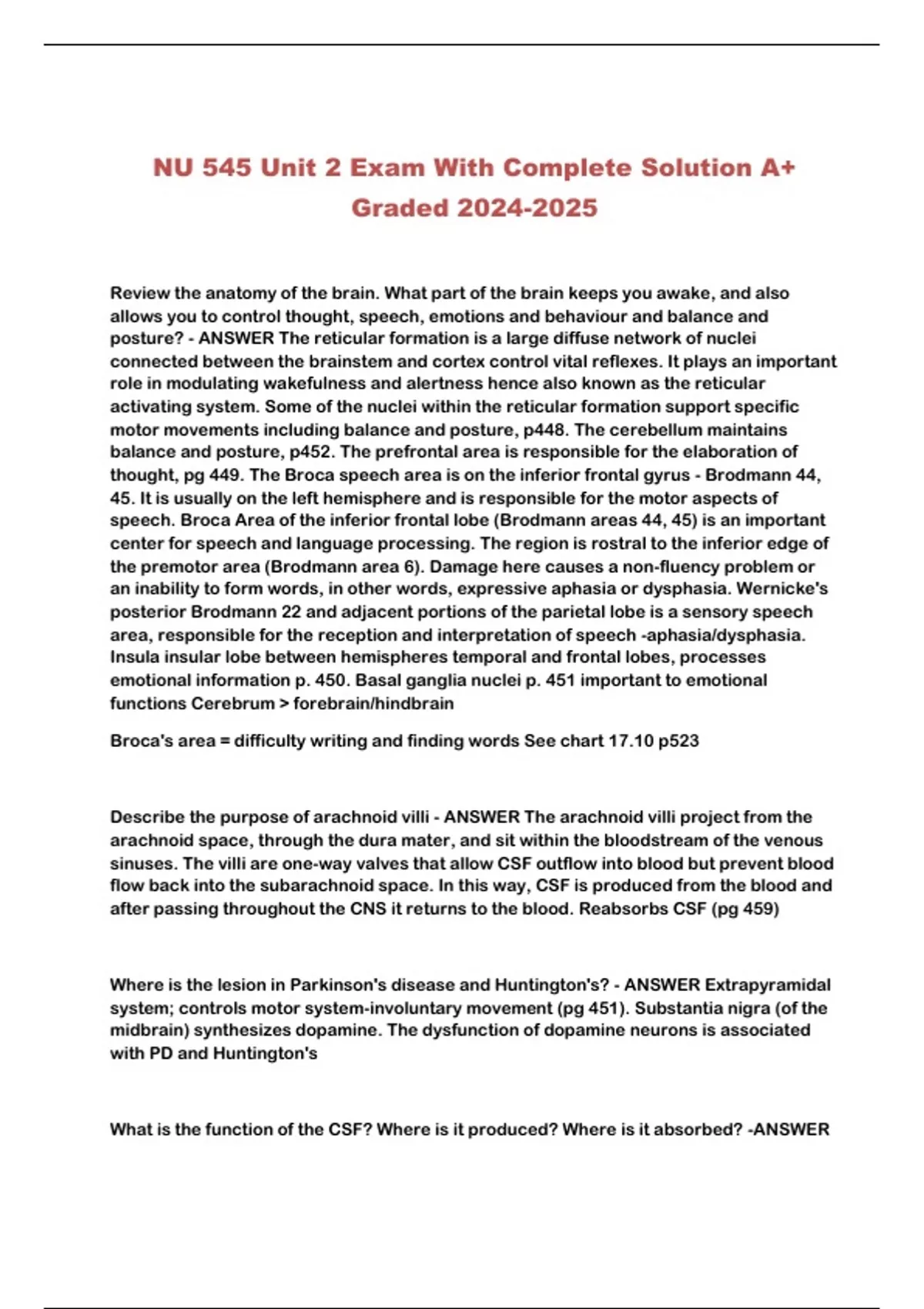 NU 545 Unit 2 Exam With Complete Solution A+
