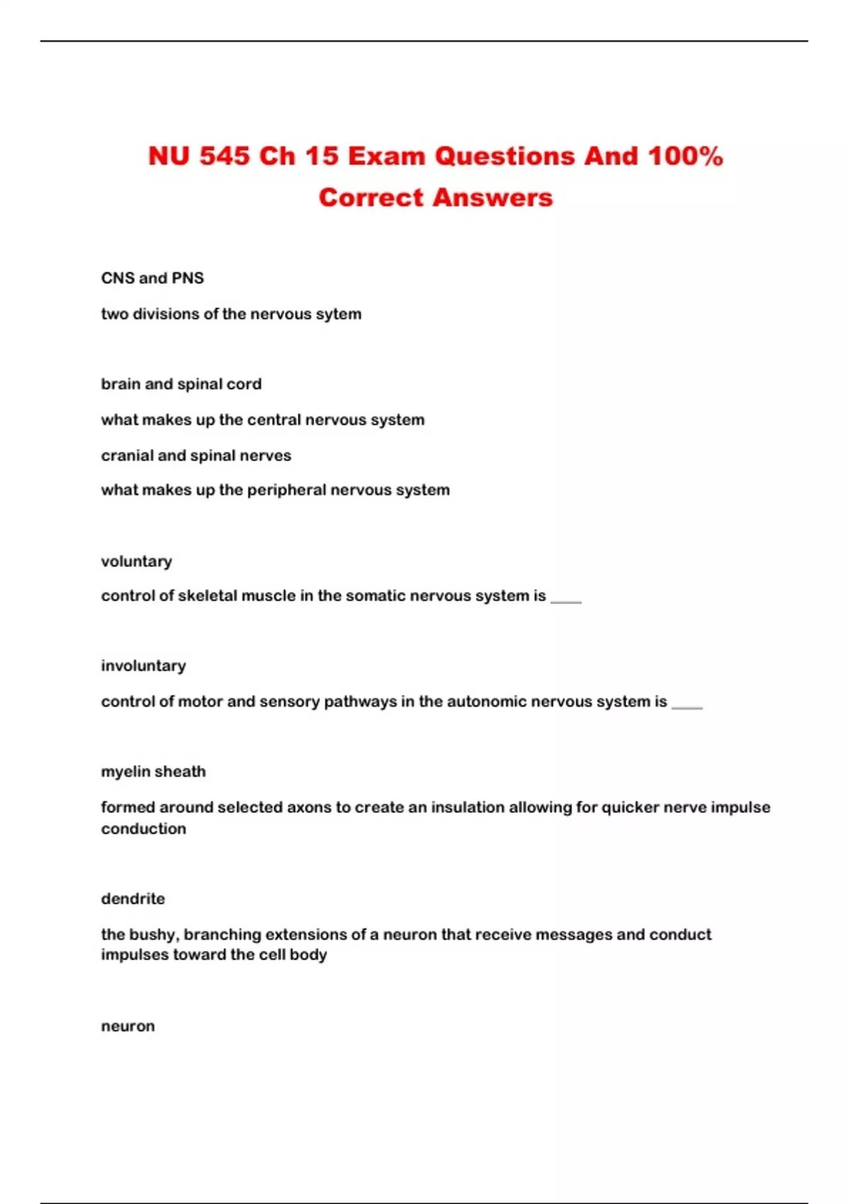 NU 545 Ch 15 Exam Questions And 100%