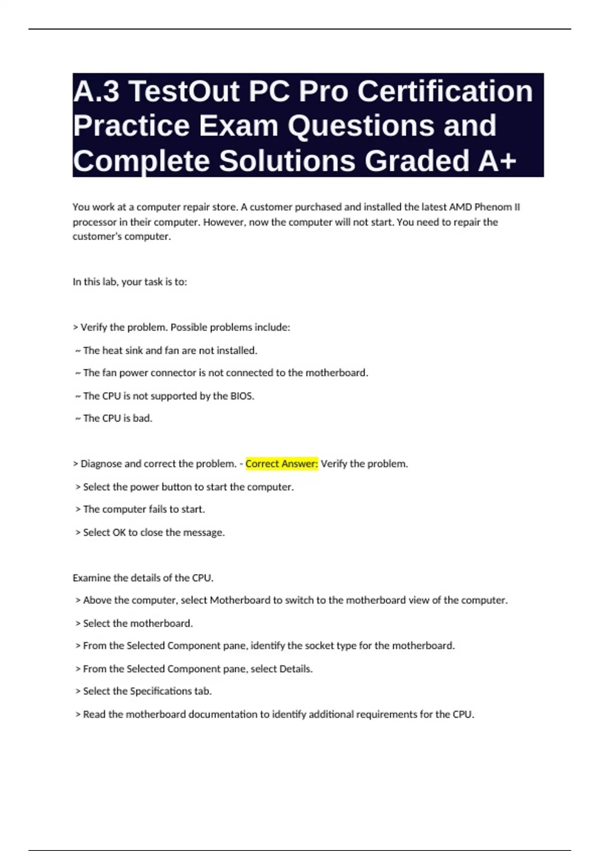 A.3 TestOut PC Pro Certification Practice Exam Questions with Complete Solutions Graded A+