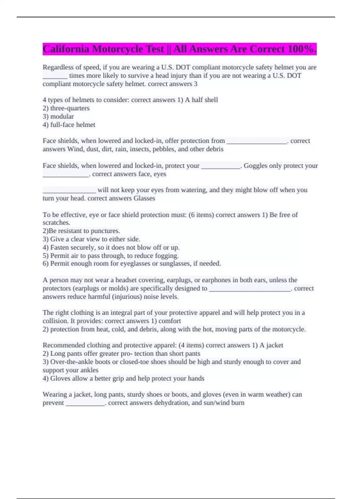 Body Position - To control a motorcycle: correct answers 1) Posture