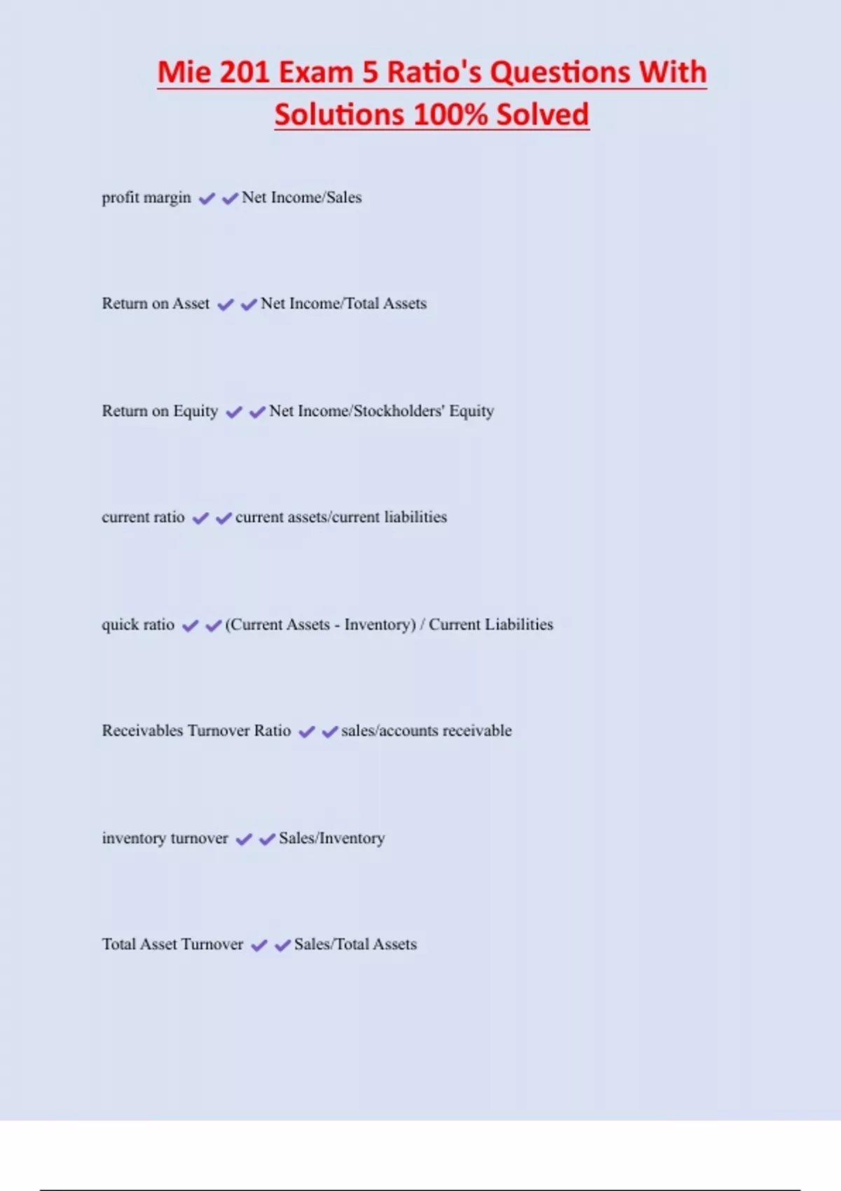quick ratio (Current Assets - Inventory) / Current Liabilities