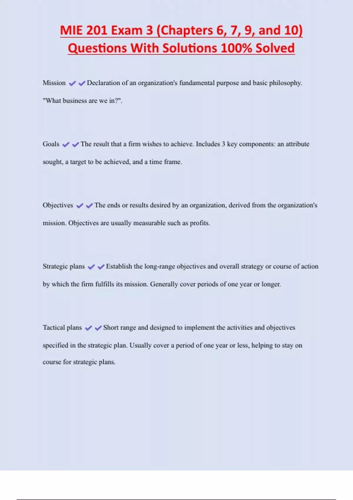 , MIE 201 Exam 3 (Chapters 6, 7, 9, and 10)