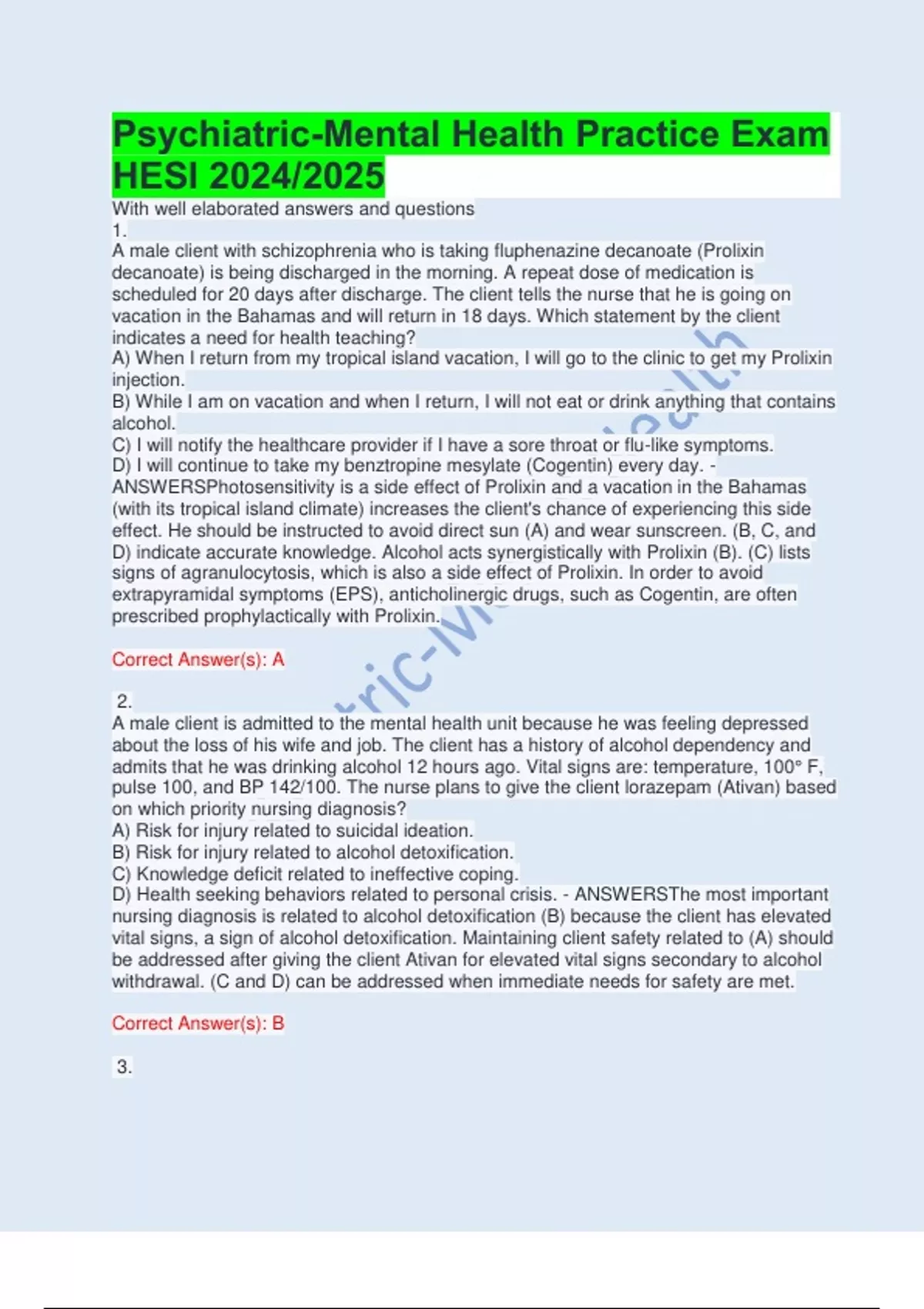 D) indicate accurate knowledge. Alcohol acts synergistically with Prolixin (B). (C) lists