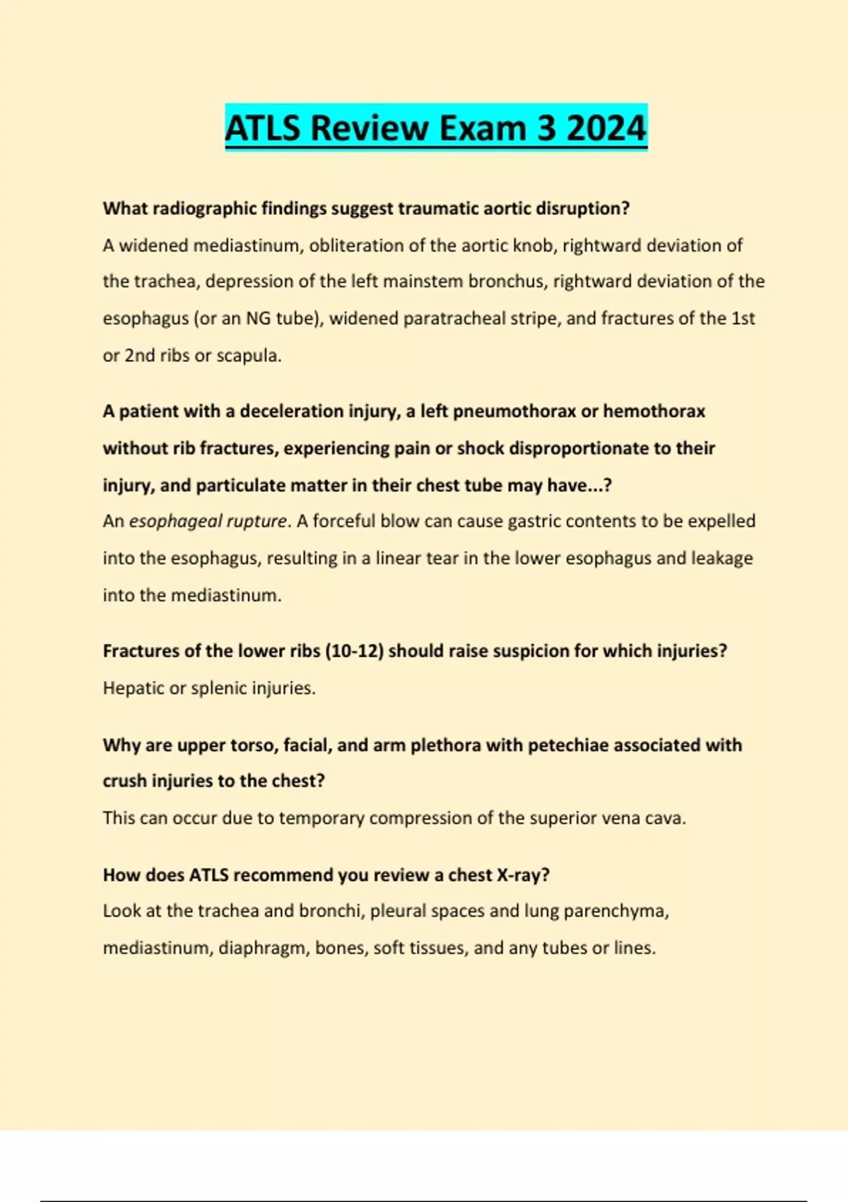ATLS Review Exam 3 2024
