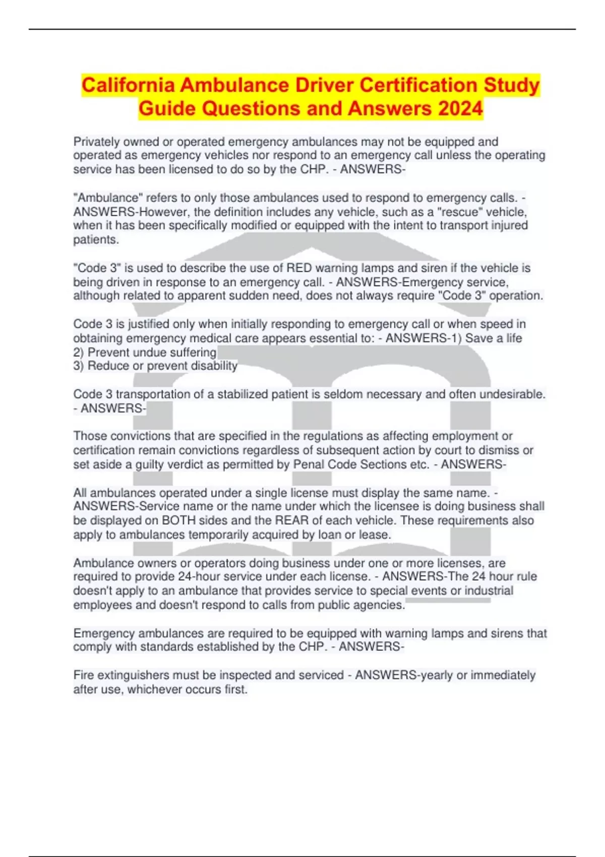 Ambulance driver certificates are not required for the following: - ANSWERS-1) Persons