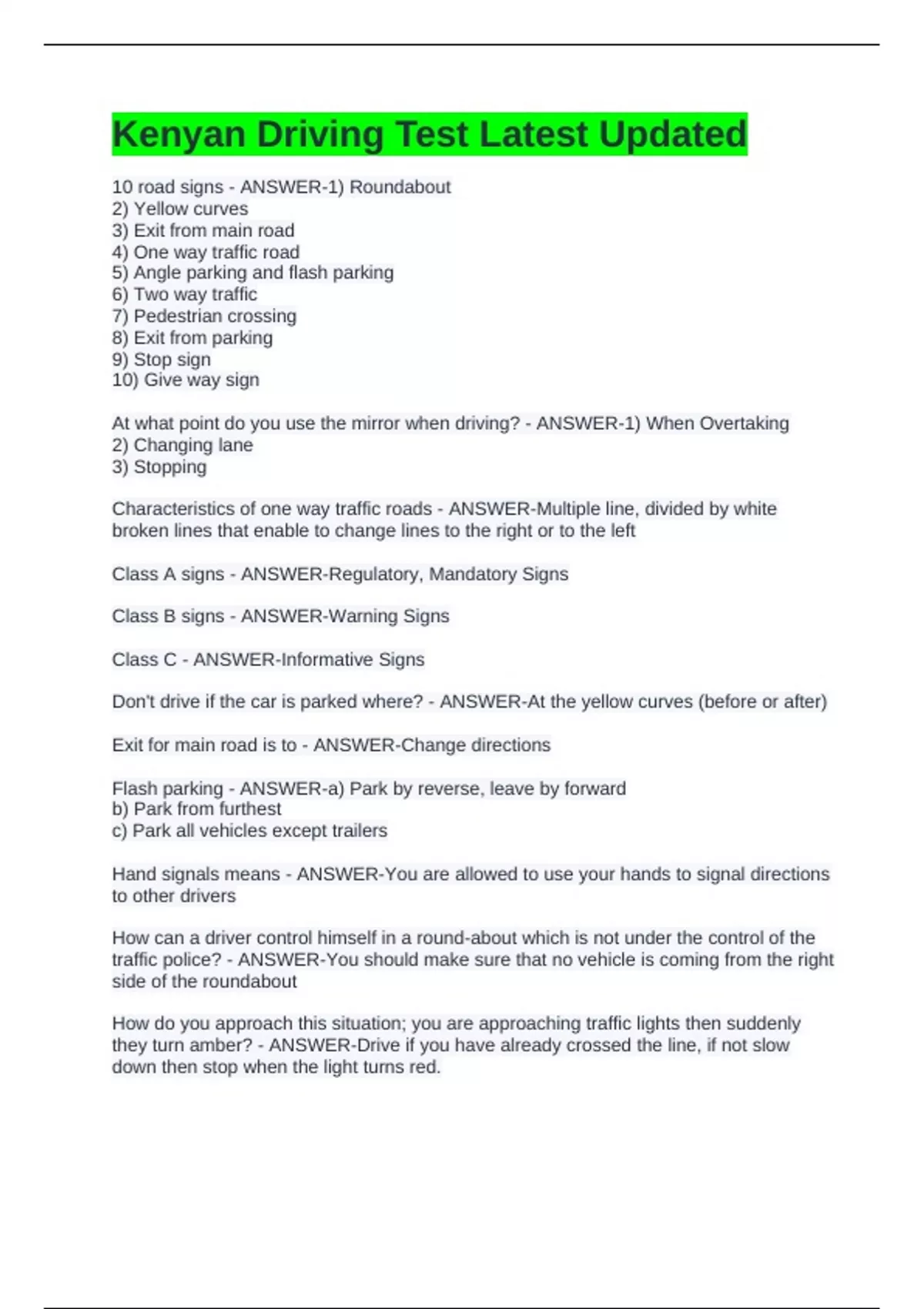Kenyan Driving Test Latest Updated