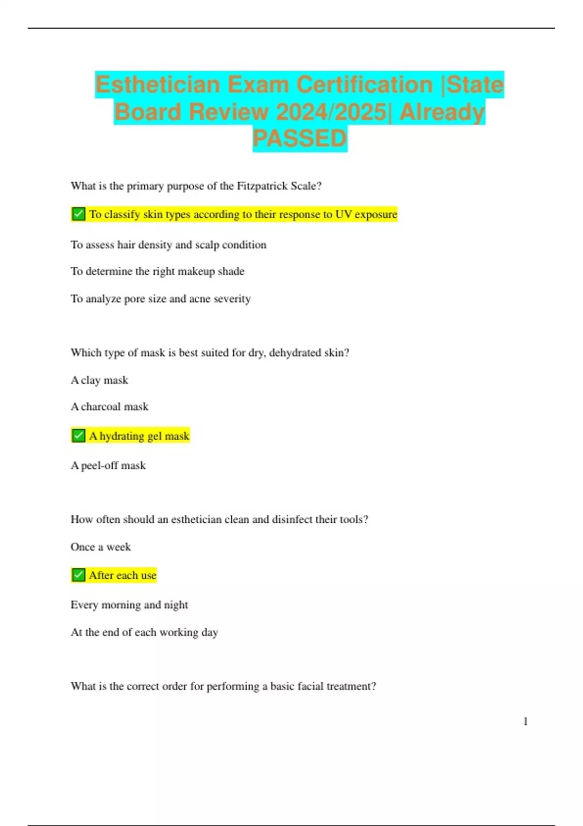 Esthetician Exam Certification |State Board Review 2024/2025| Already PASSED