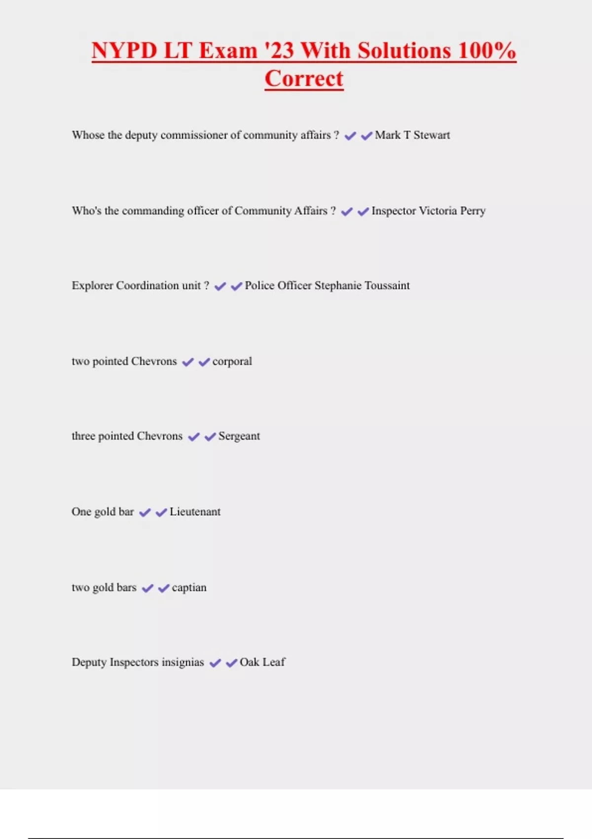 , NYPD LT Exam '23 With Solutions 100%