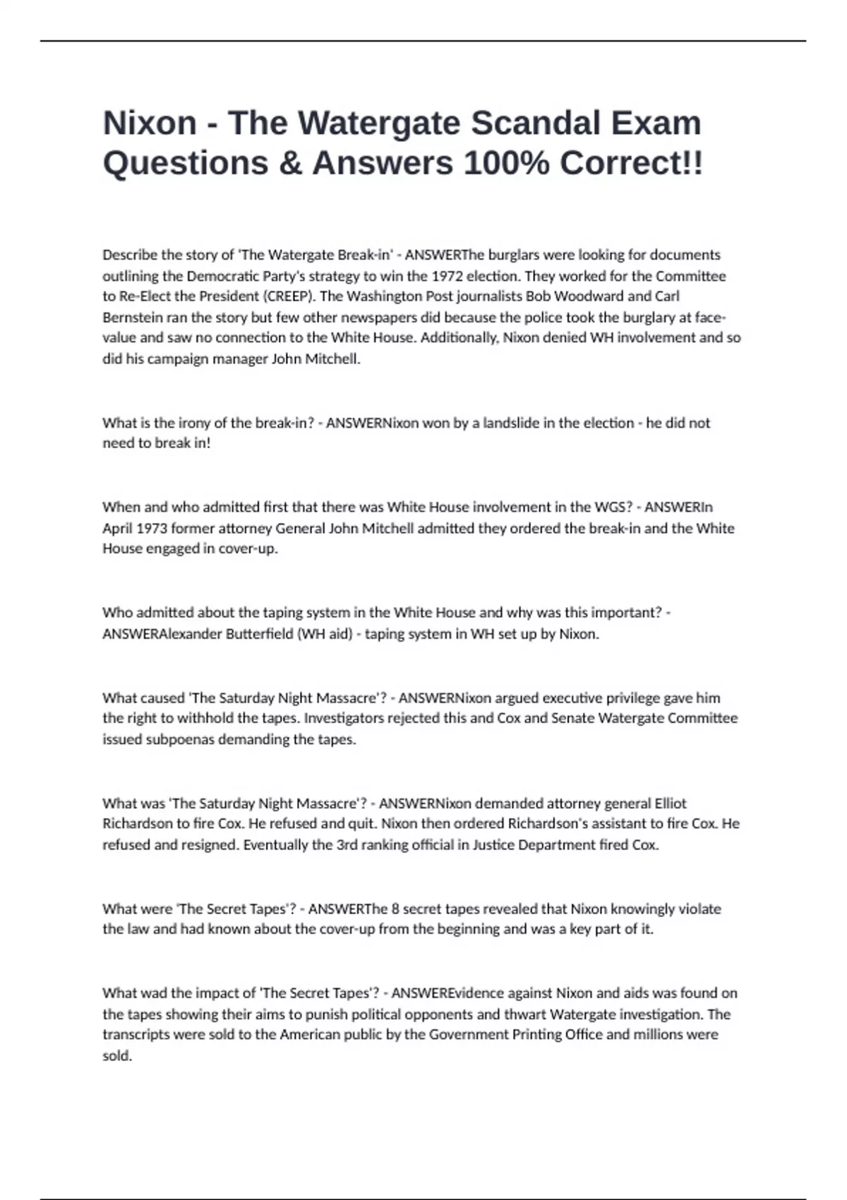 What wad the impact of 'The Secret Tapes'? - ANSWEREvidence against Nixon and aids was found on