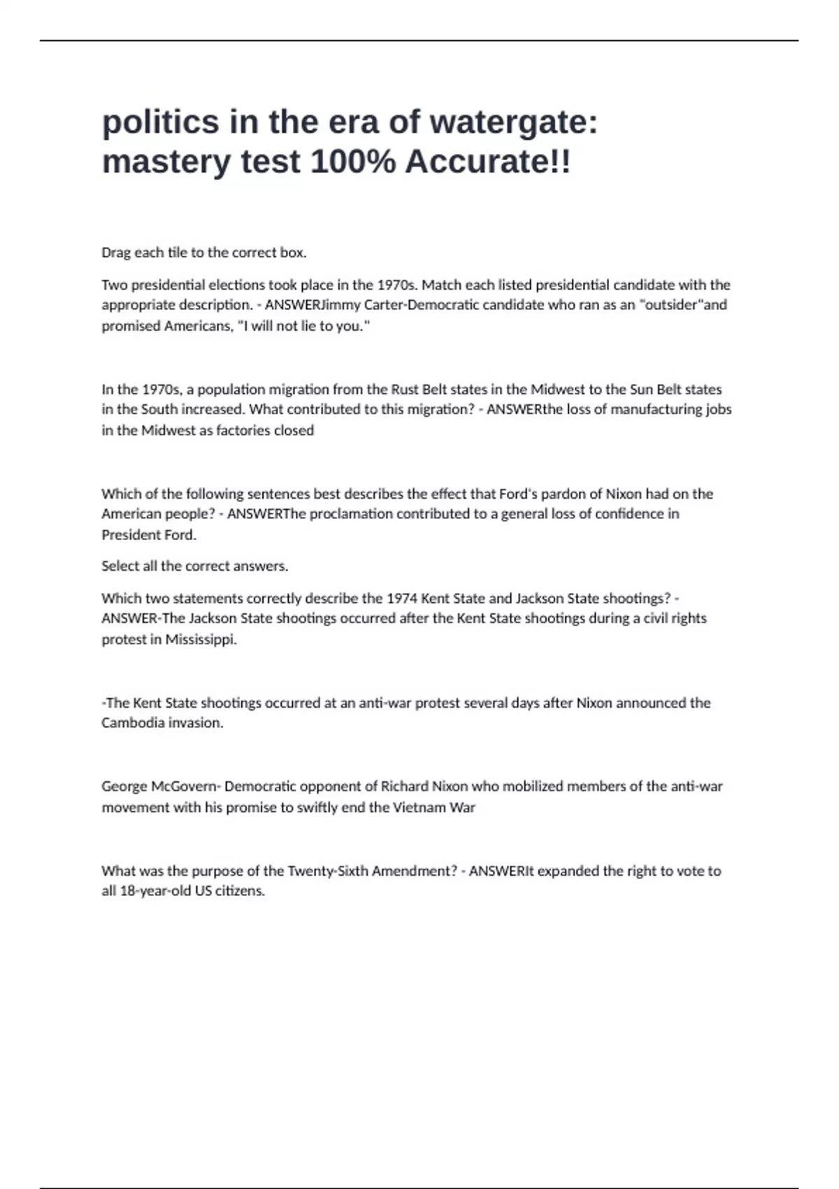 What was the purpose of the Twenty-Sixth Amendment? - ANSWERIt expanded the right to vote to