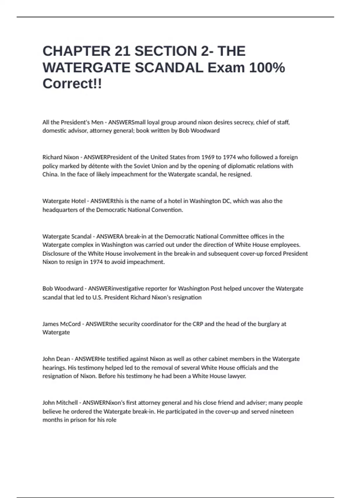 WATERGATE SCANDAL Exam 100%