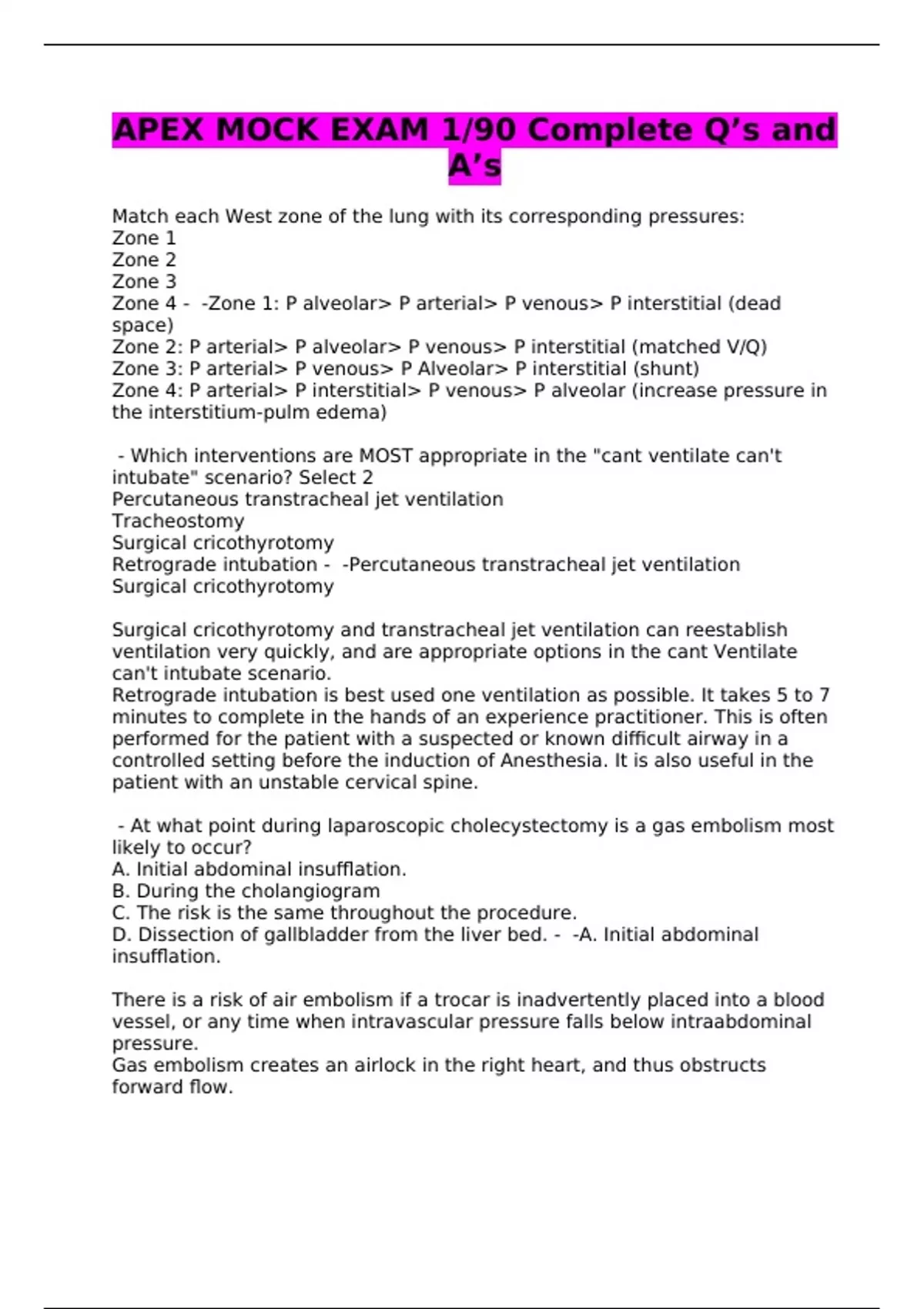 APEX MOCK EXAM 1/90 Complete Q’s and A’s