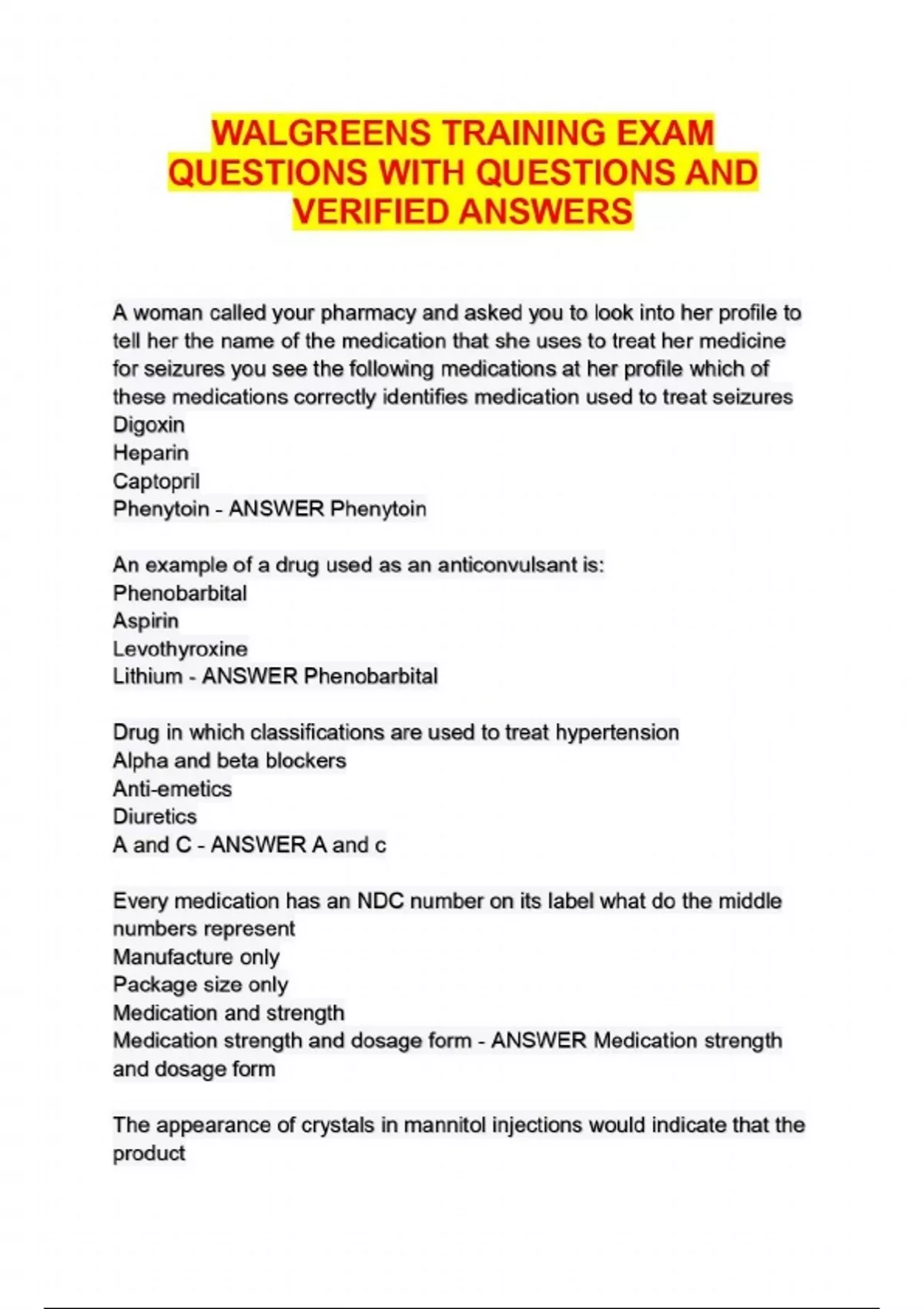WALGREENS TRAINING EXAM QUESTIONS WITH QUESTIONS AND VERIFIED ANSWERS...