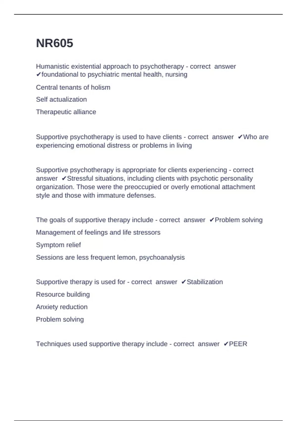 The goals of supportive therapy include - correct answer ✔Problem solving