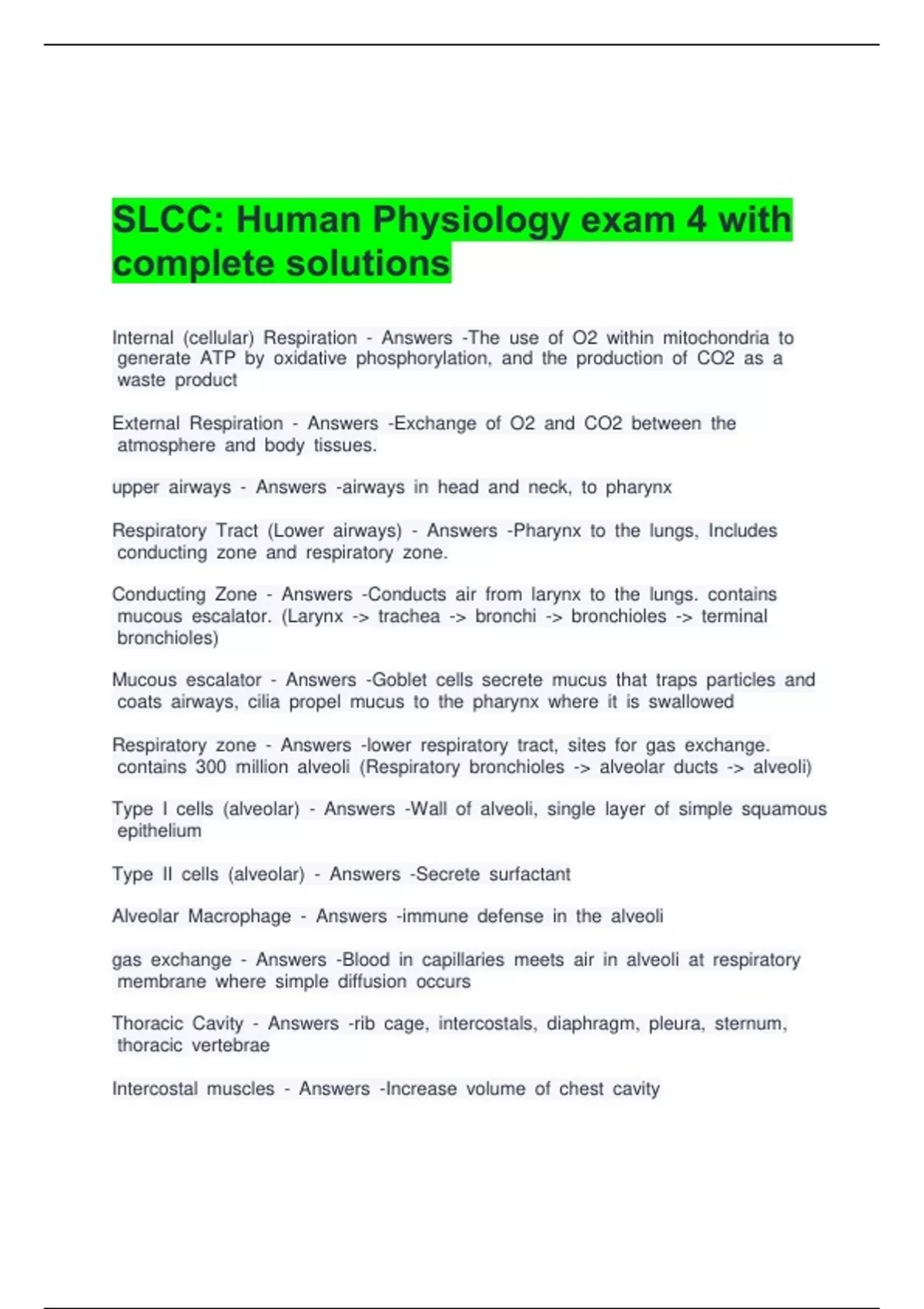 Respiratory iizone ii- iiAnswers ii-lower iirespiratory iitract, iisites iifor iigas iiexchange.