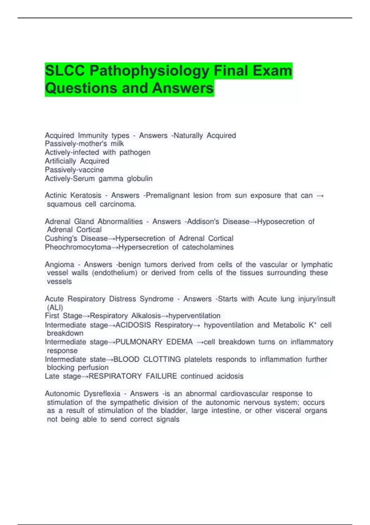 SLCC Pathophysiology Final Exam