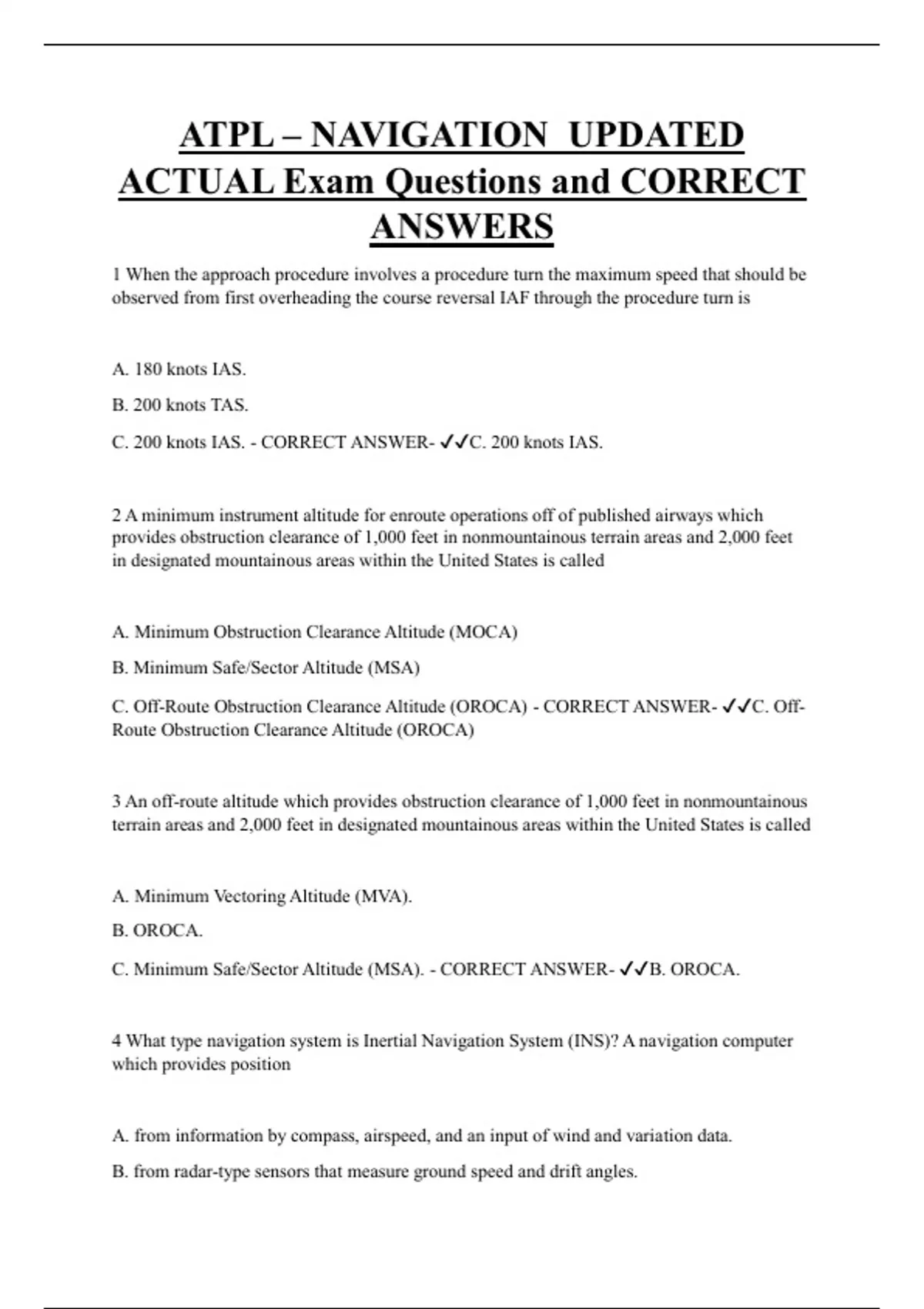C. Off-Route Obstruction Clearance Altitude (OROCA) - CORRECT ANSWER- ✔✔C. Off-