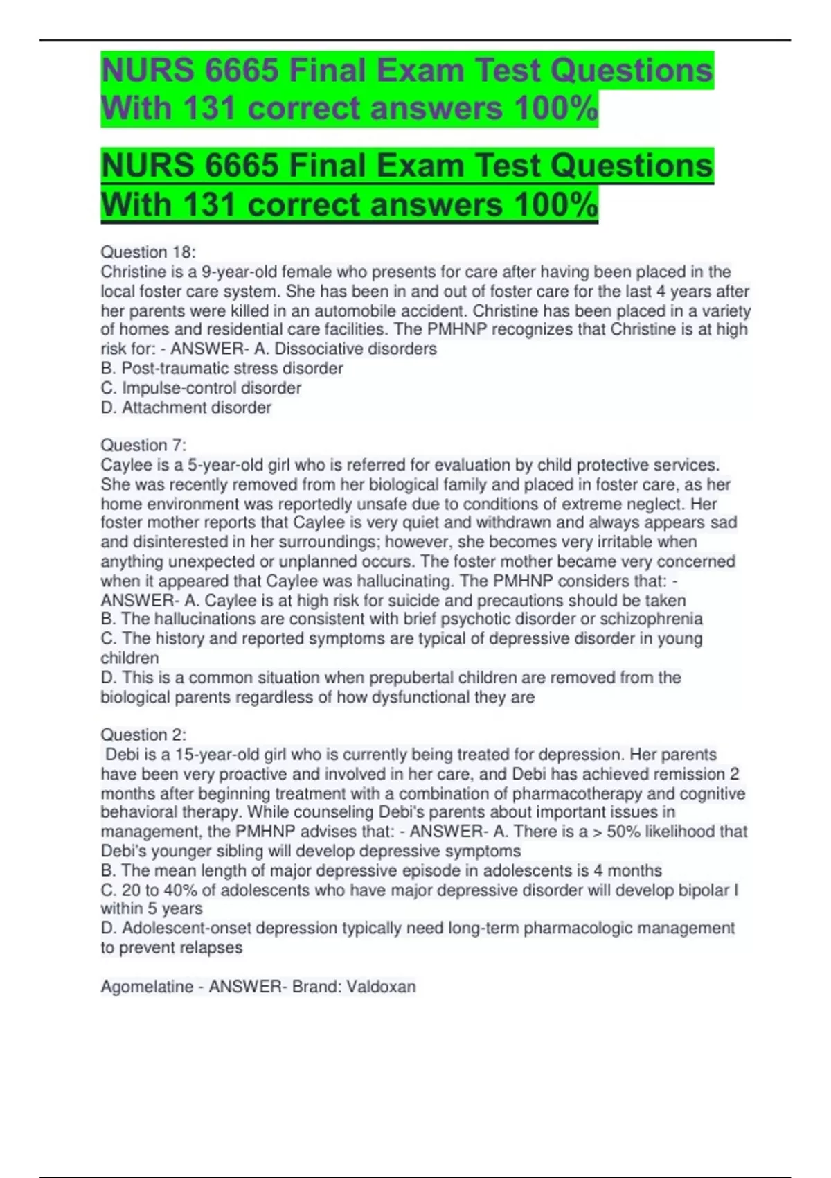 NURS 6665 Final Exam Test Questions