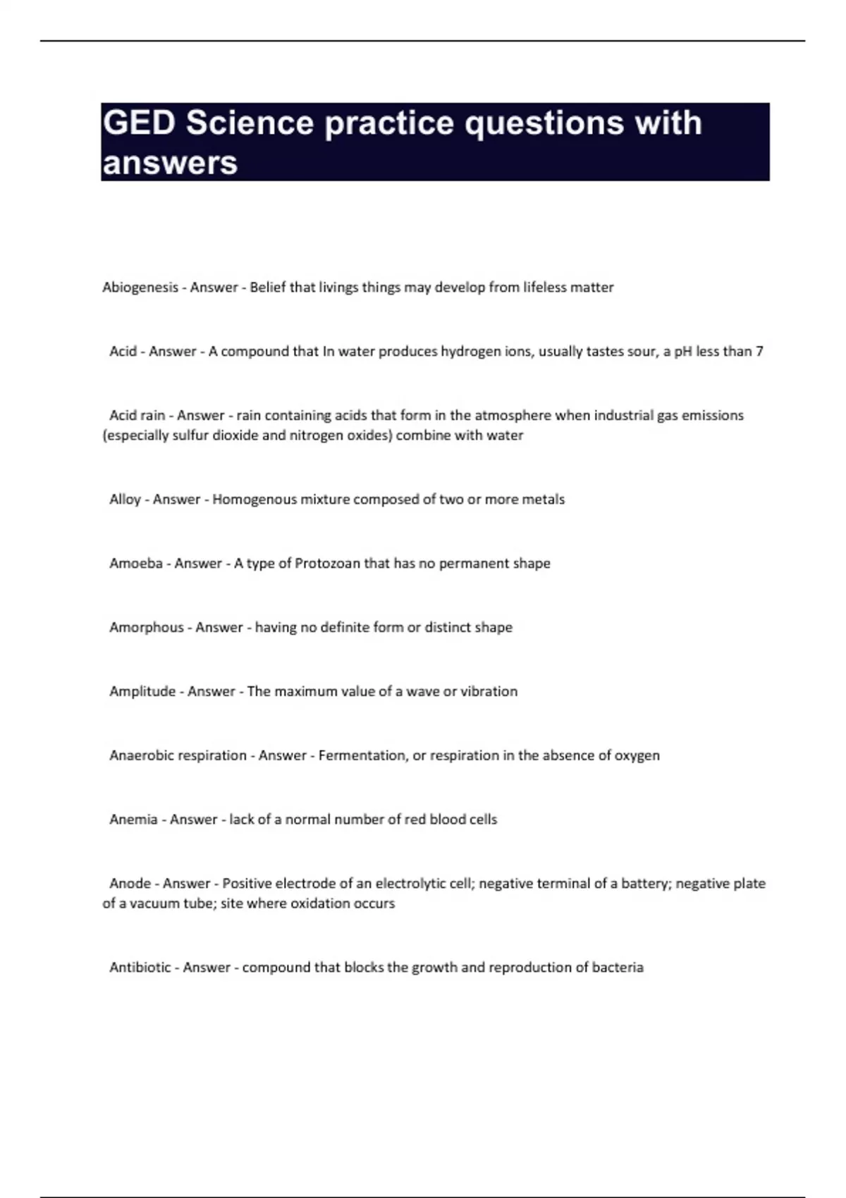 GED Science practice questions with