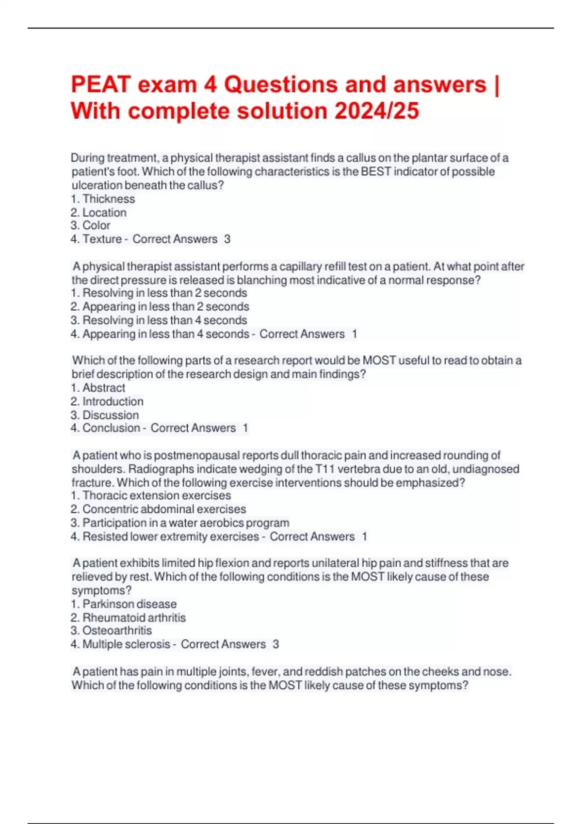 PEAT exam 4 Questions and answers | With complete solution 2024/25