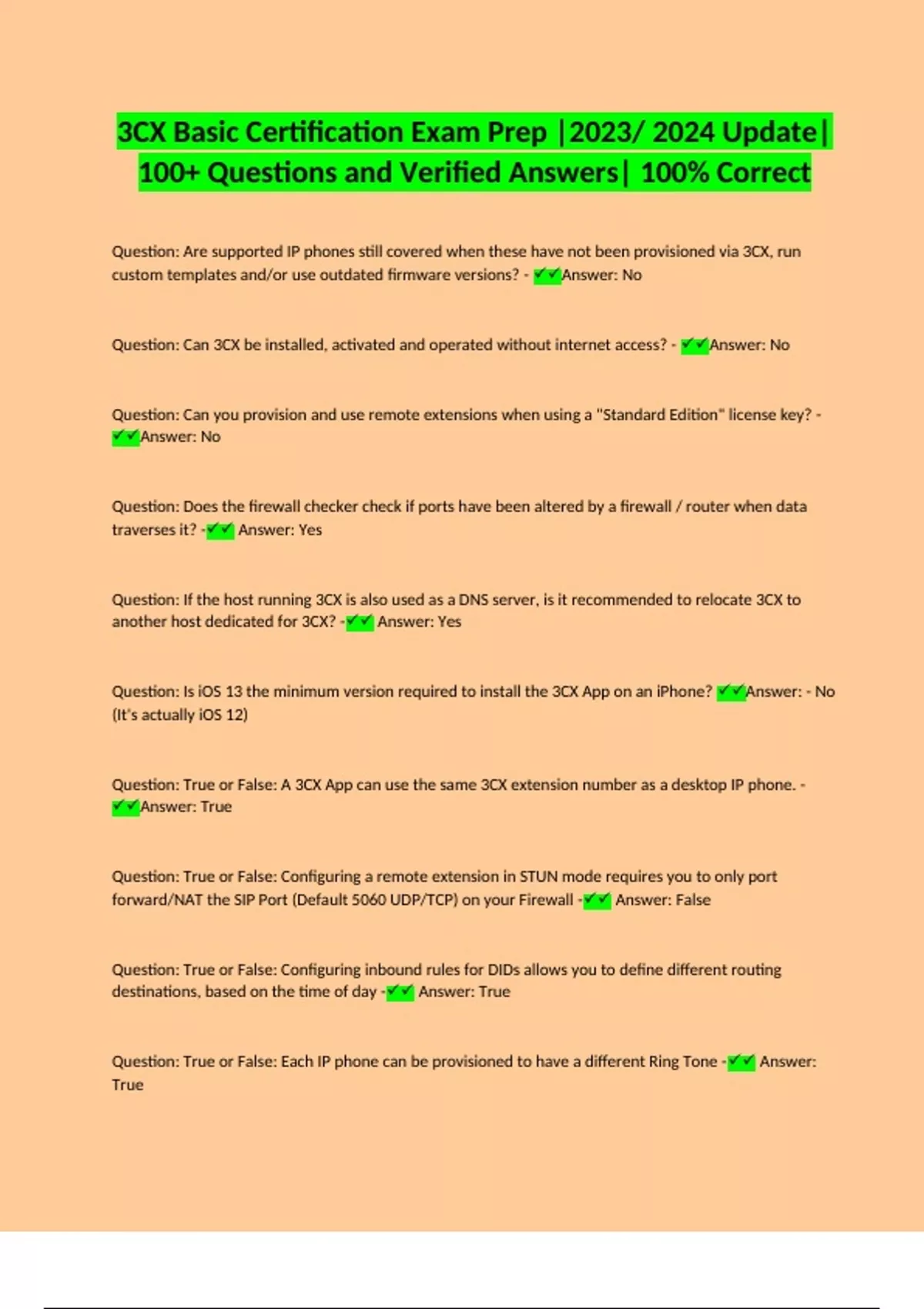 3cx Basic Certification Test | Questions with 100% Correct Answers | Verified | Latest Update