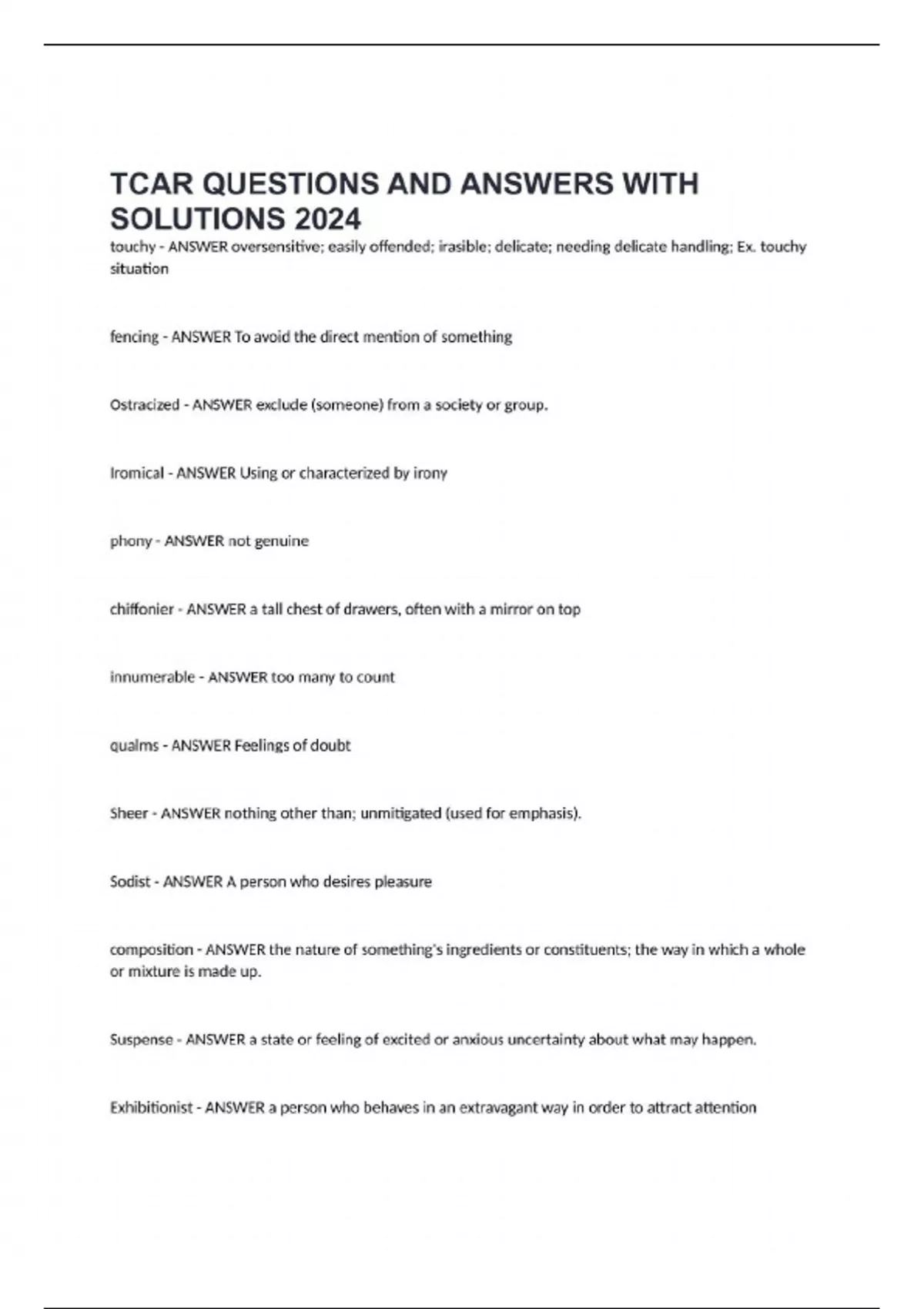 TCAR QUESTIONS AND ANSWERS WITH SOLUTIONS 2024