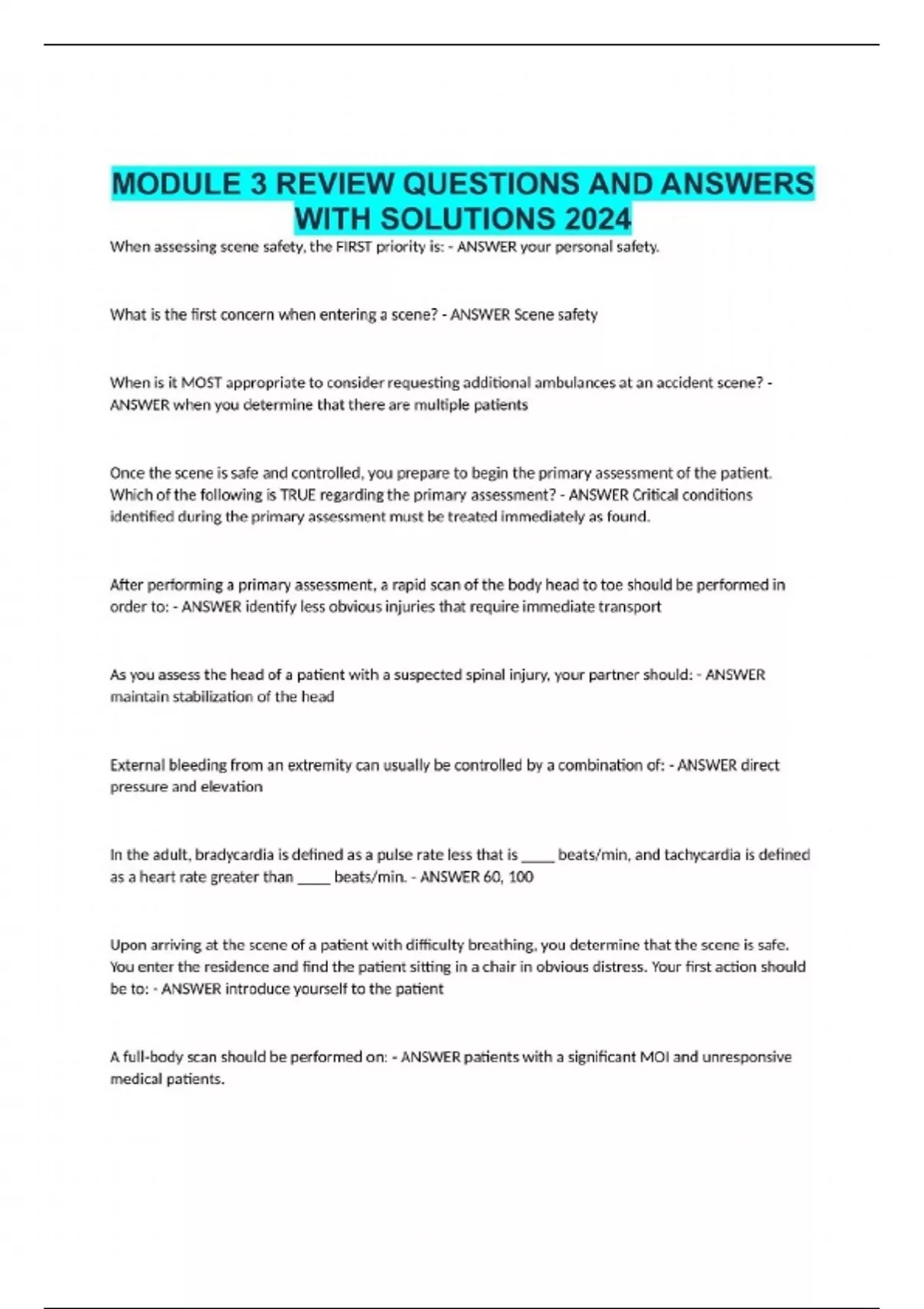 MODULE 3 REVIEW QUESTIONS AND ANSWERS WITH SOLUTIONS 2024