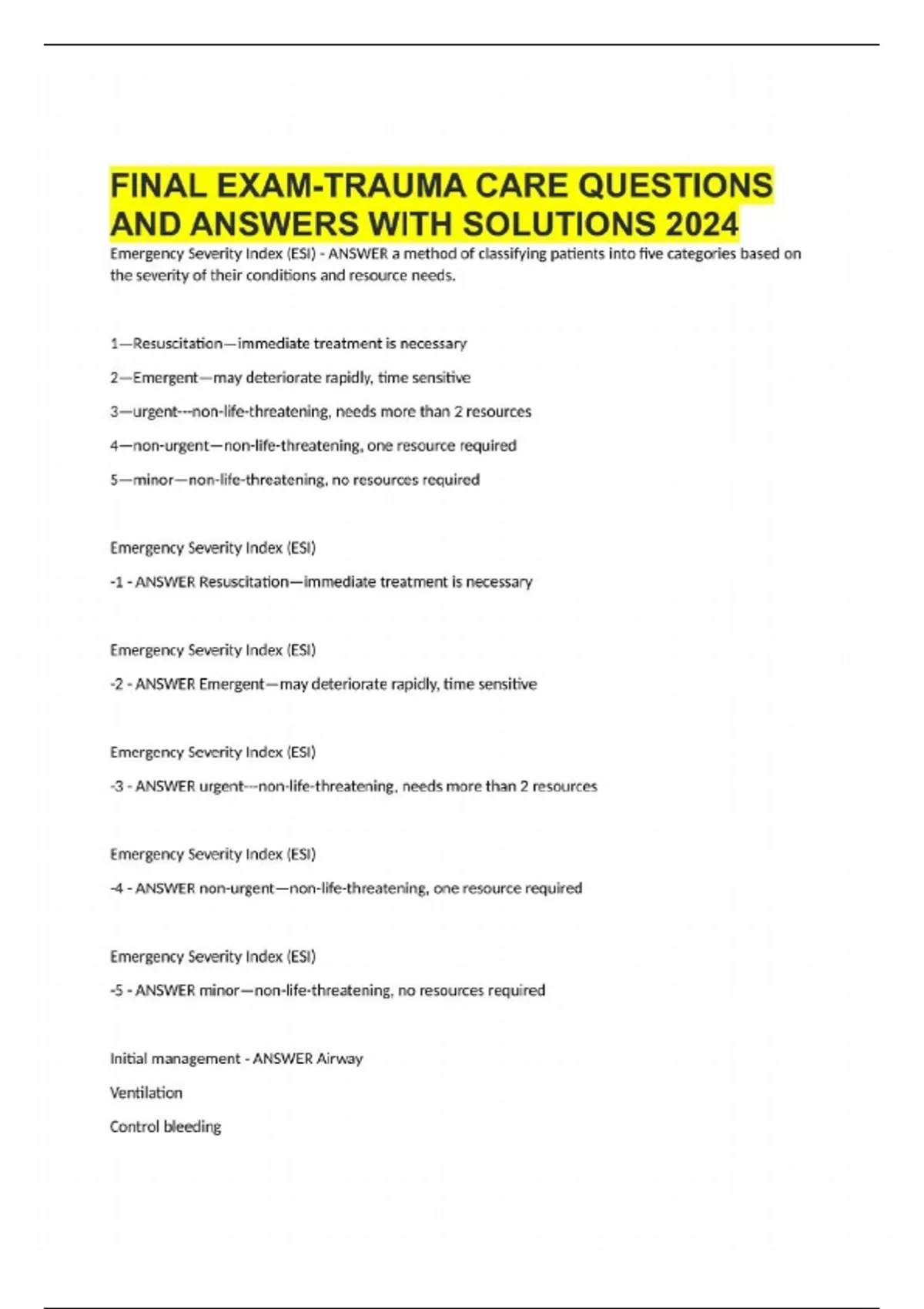 FINAL EXAM-TRAUMA CARE QUESTIONS AND ANSWERS WITH SOLUTIONS 2024