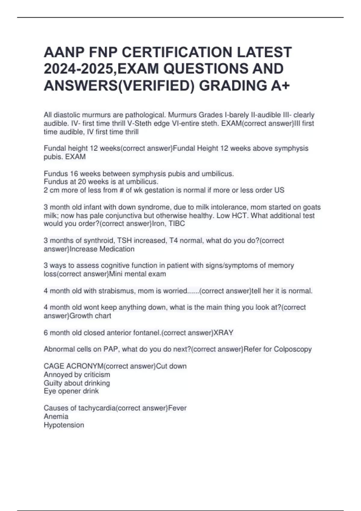 AANP FNP CERTIFICATION LATEST ,EXAM QUESTIONS AND ANSWERS(VERIFIED) GRADING A+