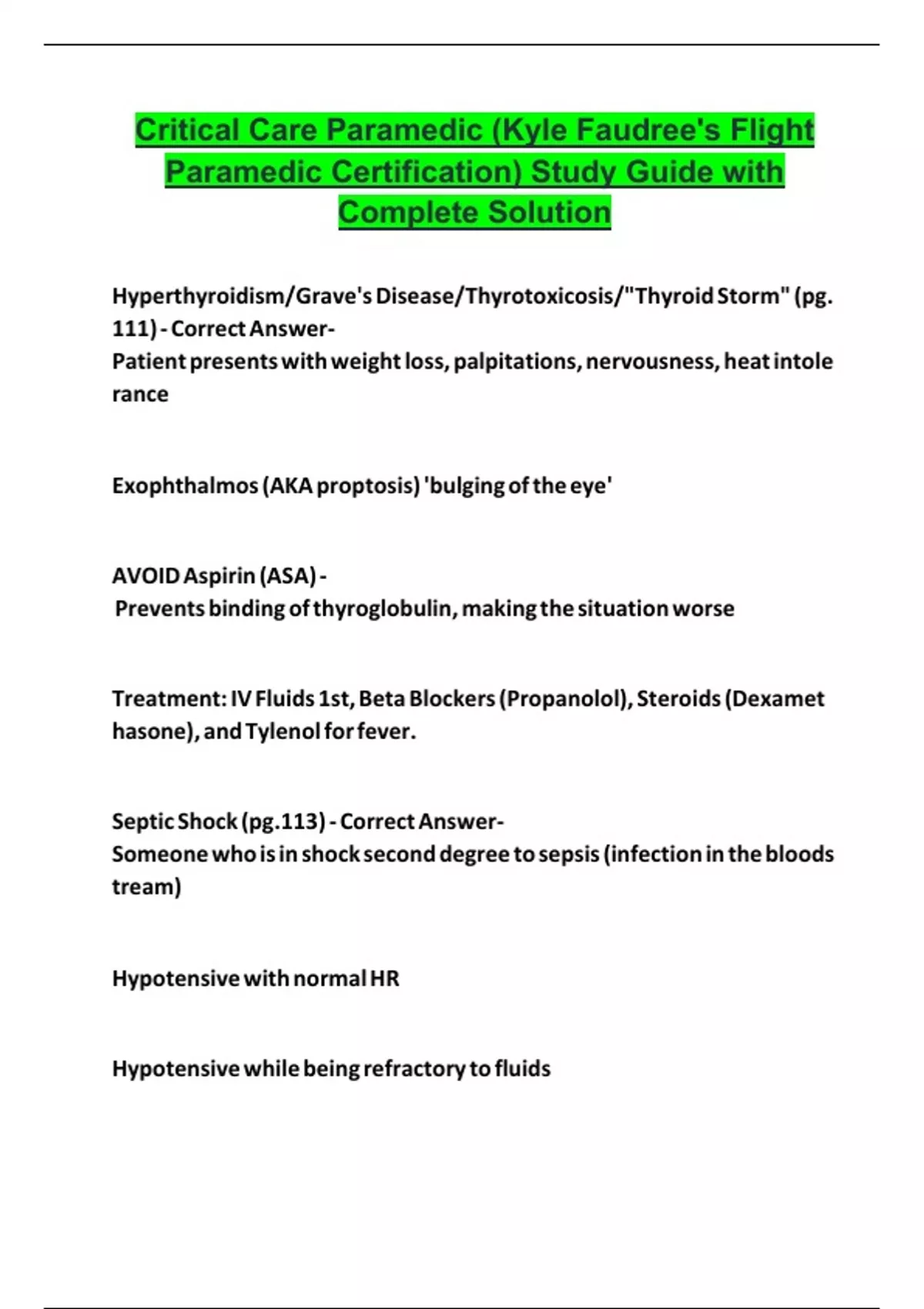 Paramedic Certification) Study Guide with